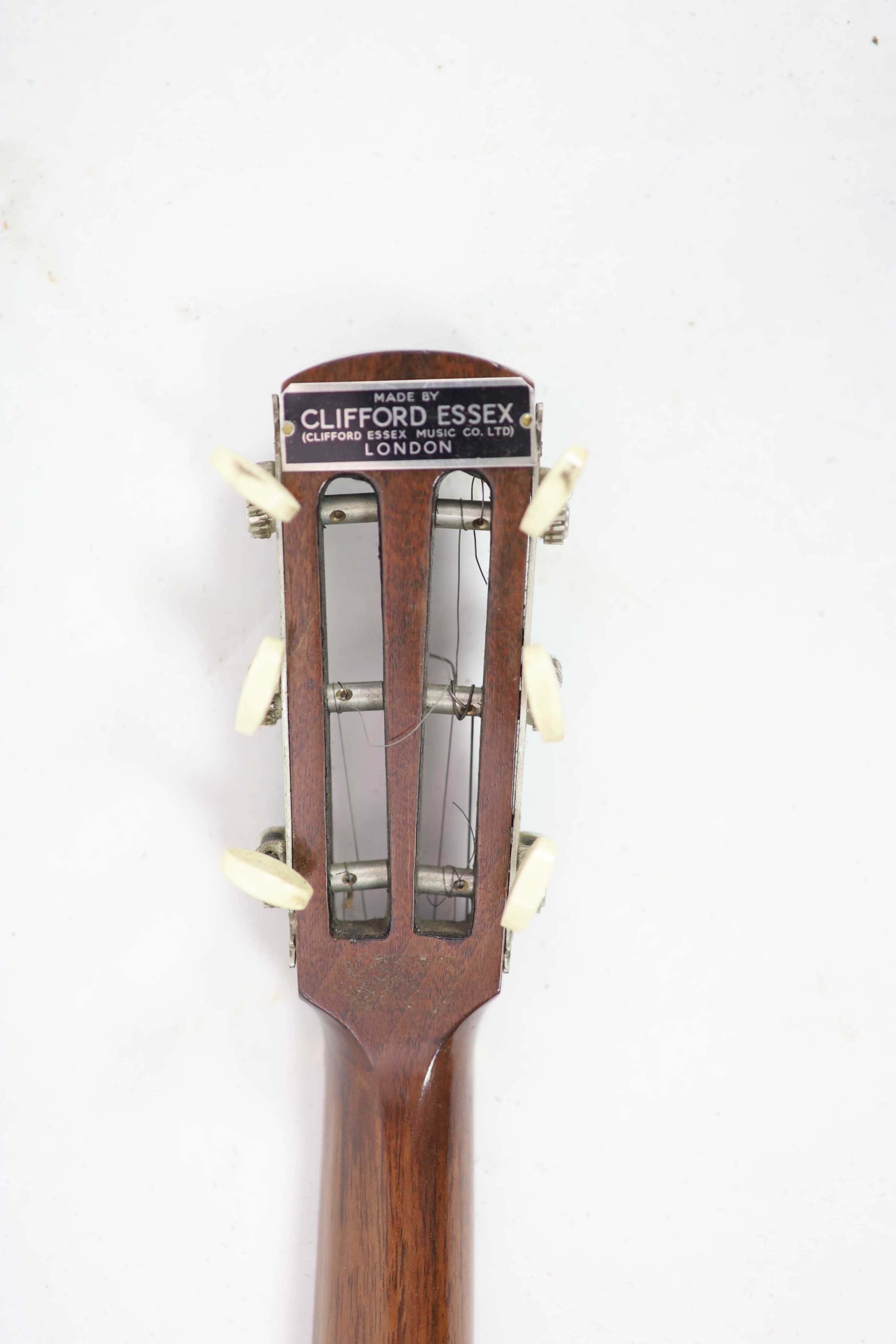 A Clifford Essex ebony mounted banjo, length 94cm, with distressed leather case