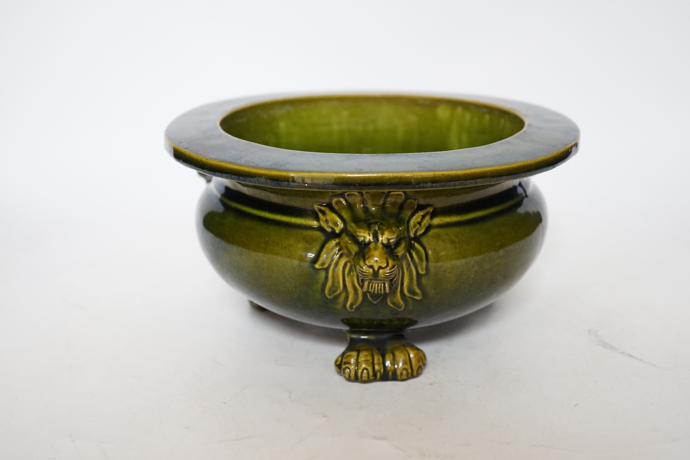 Lot 363 , A green glazed Art pottery planter raised on three paw feet, diameter 20.5cm. Condition - good