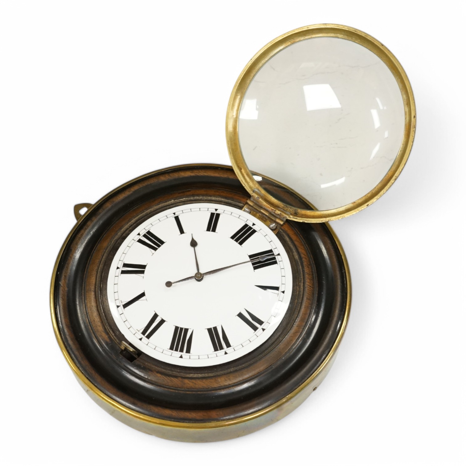 Lot 1347 , A George III brass-mounted mahogany sedan timepiece, signed David Whitelaw, Edinburgh and numbered 107, 17cm in diameter. Condition - good