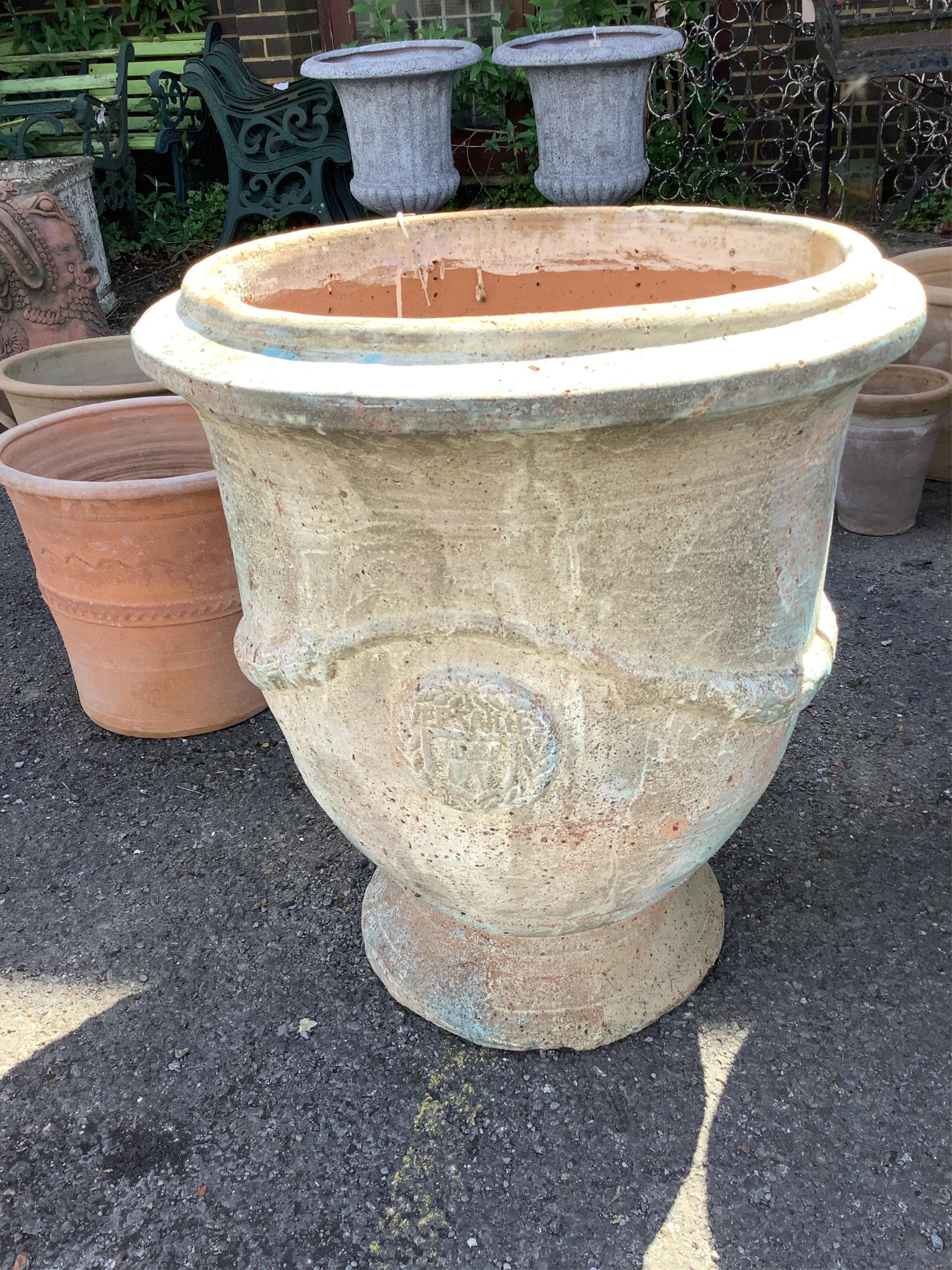 Lot 43 , A pair of large circular earthenware garden planters, diameter 61cm, height 68cm