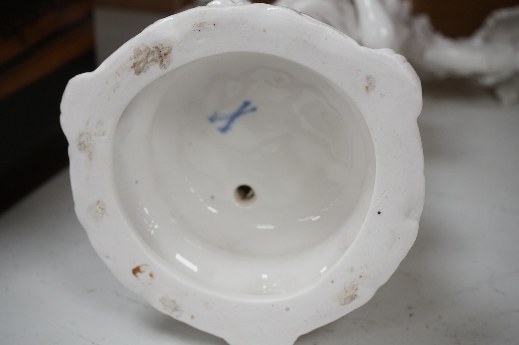 Lot 1288 , Two figural two branch candelabra, crossed swords marks, 36cm high