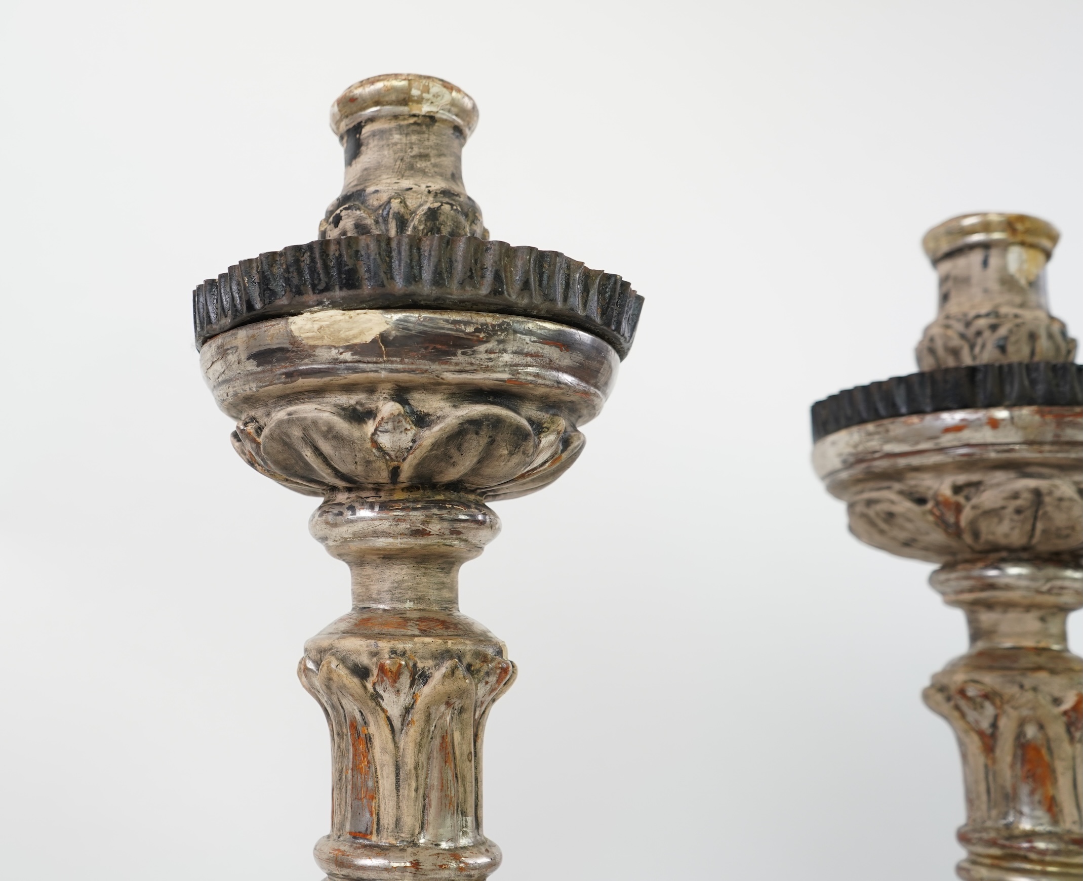Lot 344 , A set of four 18th century Italian silvered wood tall altar candlesticks