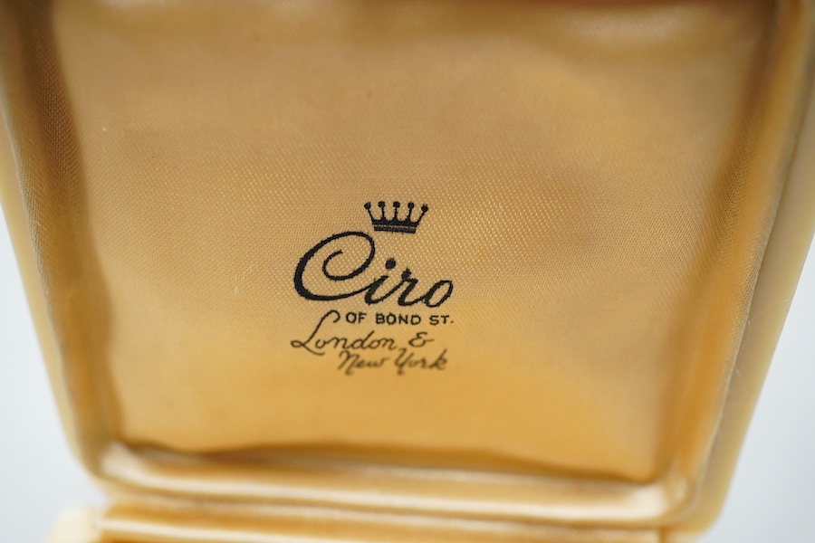 Two coral necklaces and a group of costume jewels, comprising: two coral bead necklaces, each with a gold clasp, combined gross weight approximately 35 grams; together with a simulant pearl necklace and pair of earrings by Ciro; a gilt metal watch pendant by Sonique; and a long black and colourless bead necklace