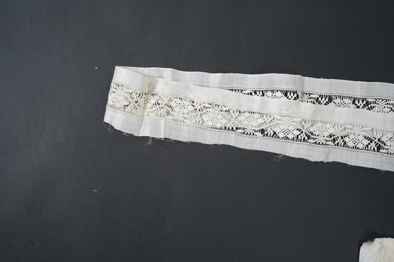 Theatre and film costume design; a collection of handmade lace trimmings, together with a few machine lace trimmings.