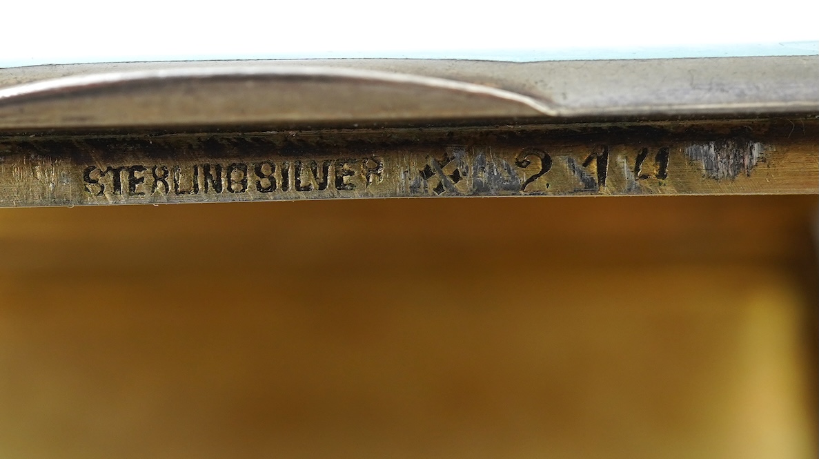An early 20th century Viennese sterling and blue enamel combination cigarette/vesta case, inscribed Carl Heiss Wien Graben 11