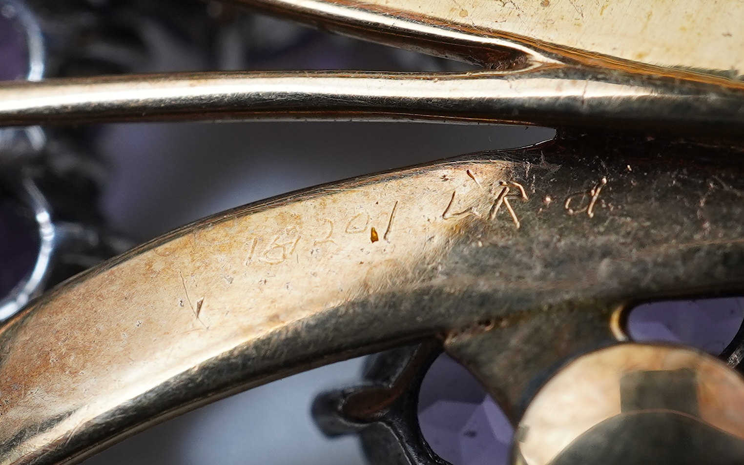 Lot 653 , A Retro amethyst and diamond brooch, circa 1956