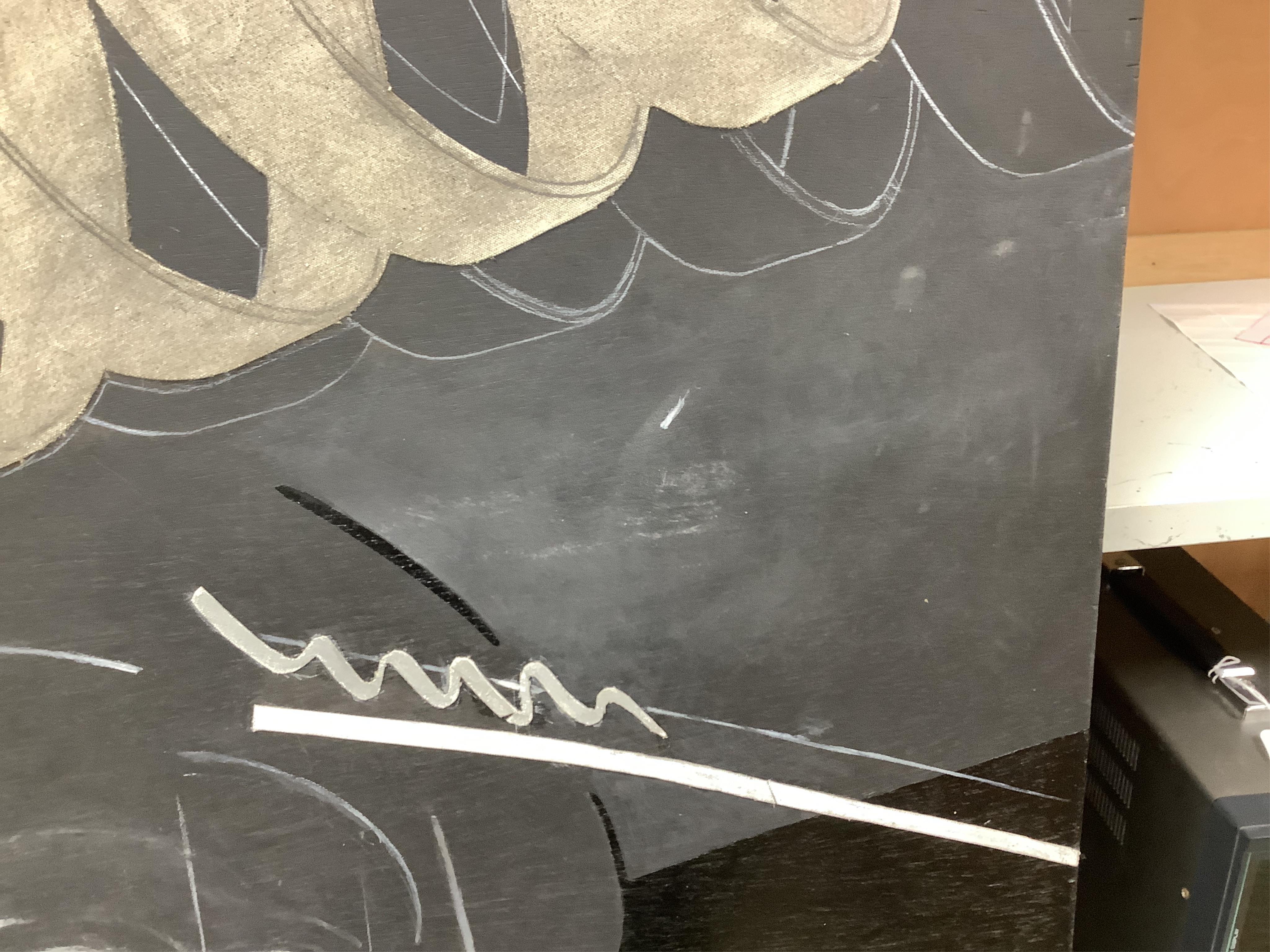 Three artworks total. Image 5 stray white paint at centre, see image 6; two drilled holes to one side. Image 2 no damage; two drilled holes to one side. Image 3 no damage although has two drilled holes to each side, image 7.