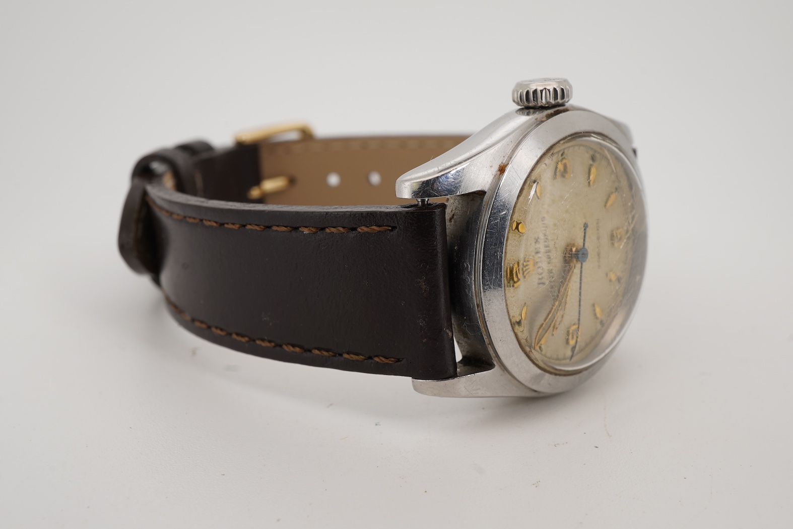 Lot 113 , A gentleman's 1950's stainless steel Rolex Oyster Speedking Precision manual wind wrist watch