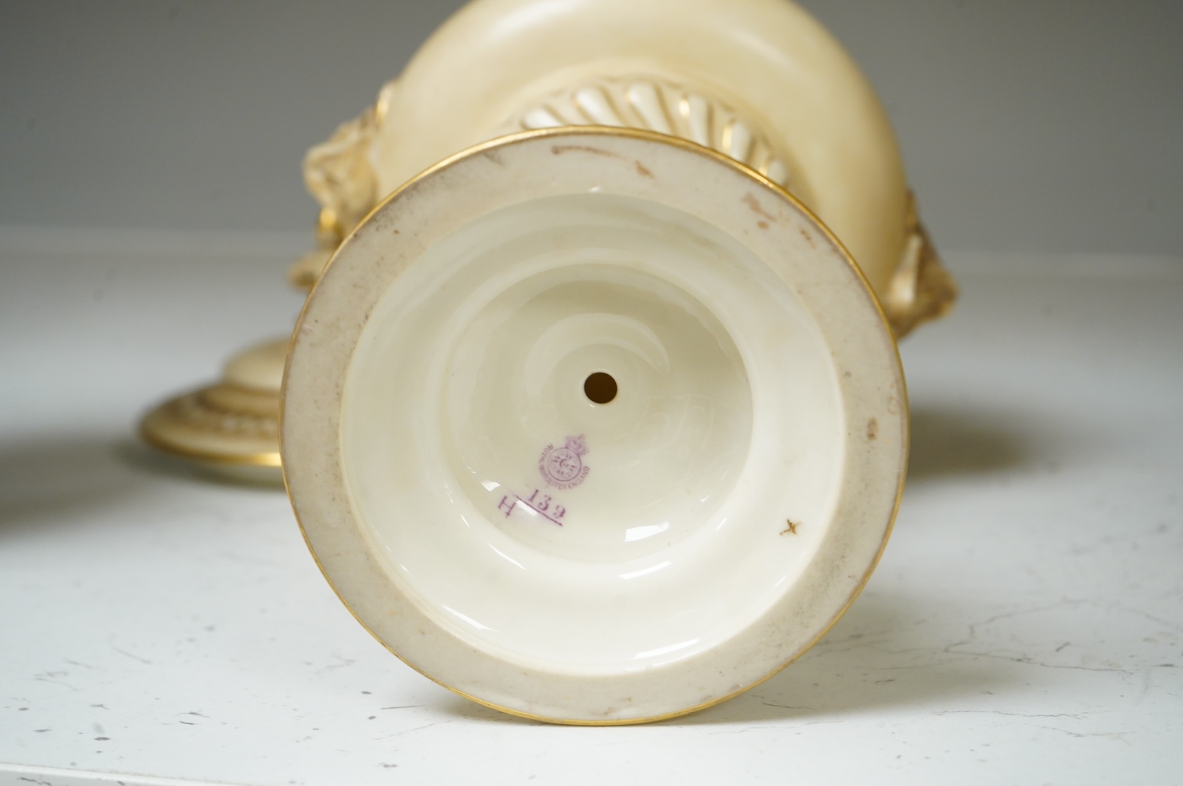 A late Victorian Royal Worcester porcelain pot pourri and cover, numbered 139 to base, 25cm