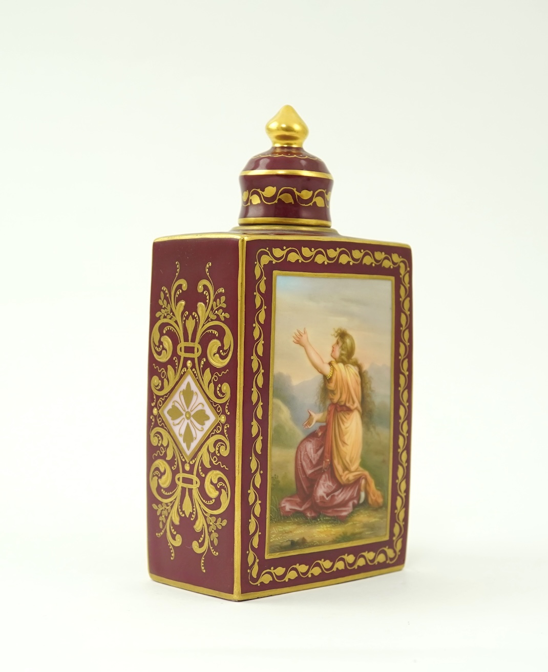 A Vienna style porcelain tea caddy and cover, late 19th century