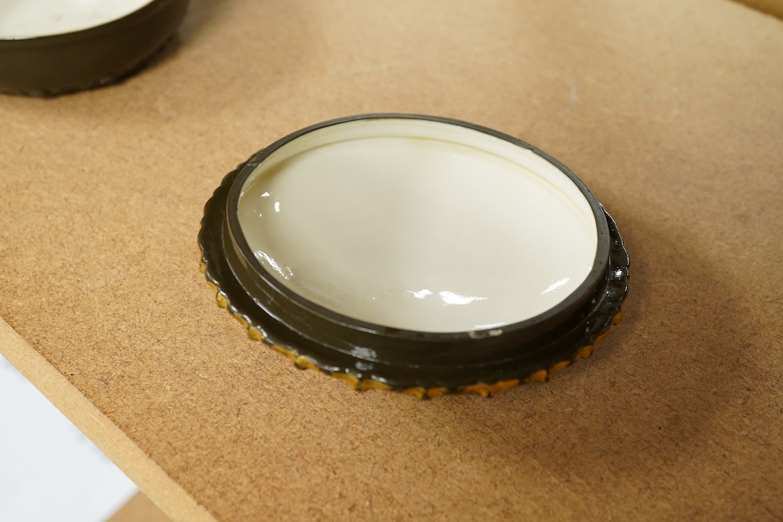 An English circular floral pate-sur-pate box and cover, 11.5cm