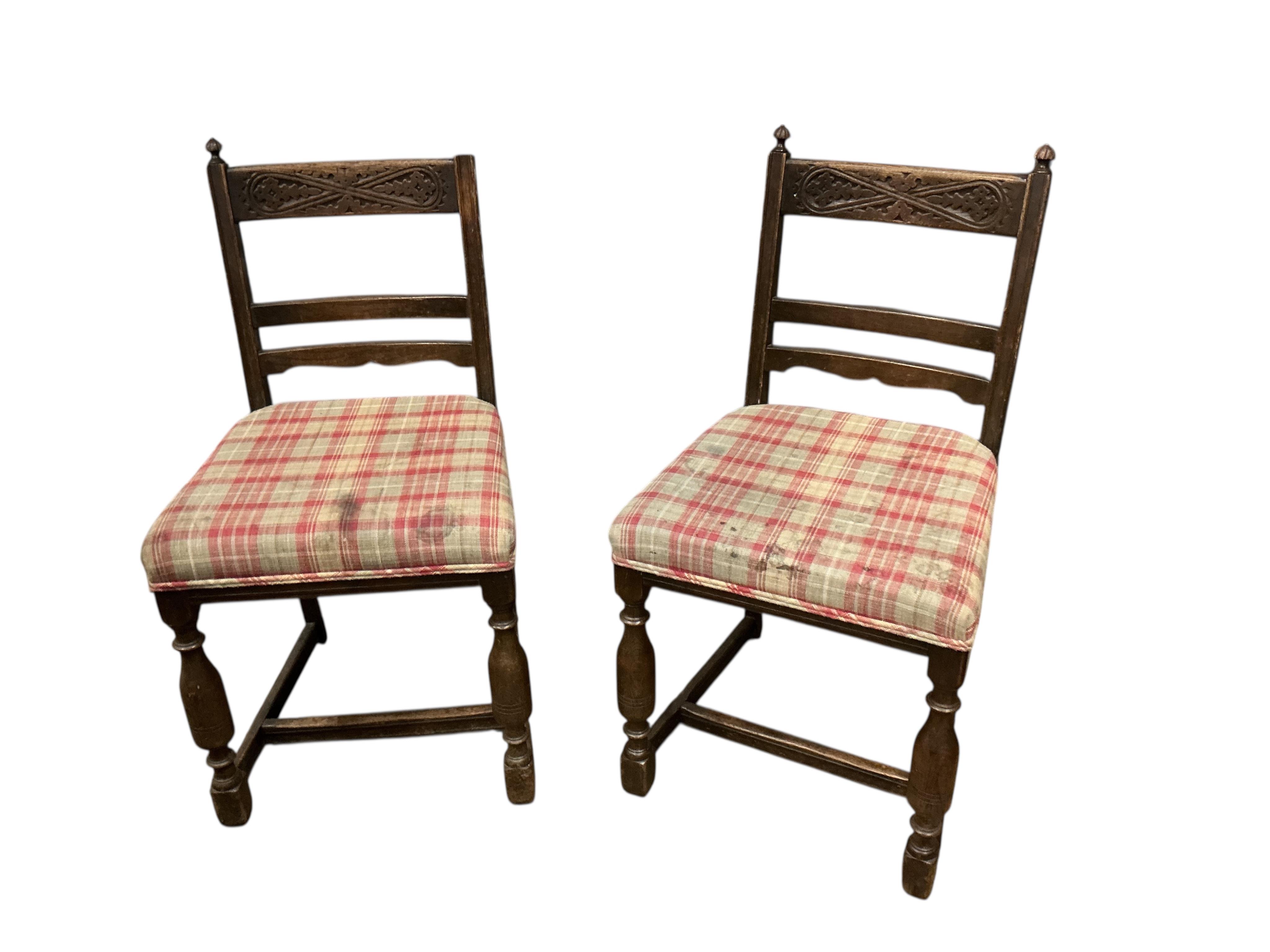 Lot 1036 , An 18th century style rectangular oak extending draw leaf refectory table, width 136cm, depth 80cm, height 78cm together with four carved oak dining chairs