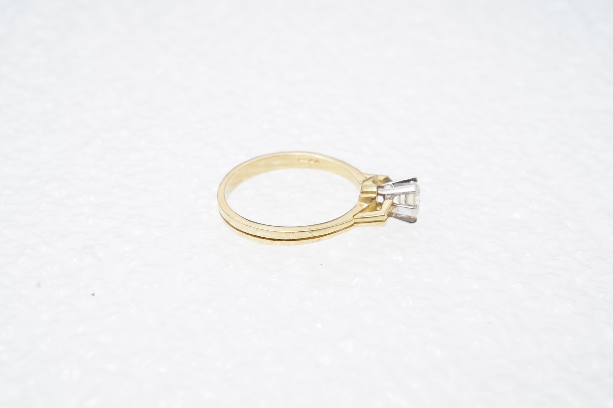 A diamond solitaire ring, claw-set with a brilliant-cut diamond weighing approximately 0.30 carats, mounted in 18ct gold, size K1/2, British hallmarks, gross weight approximately 3 grams