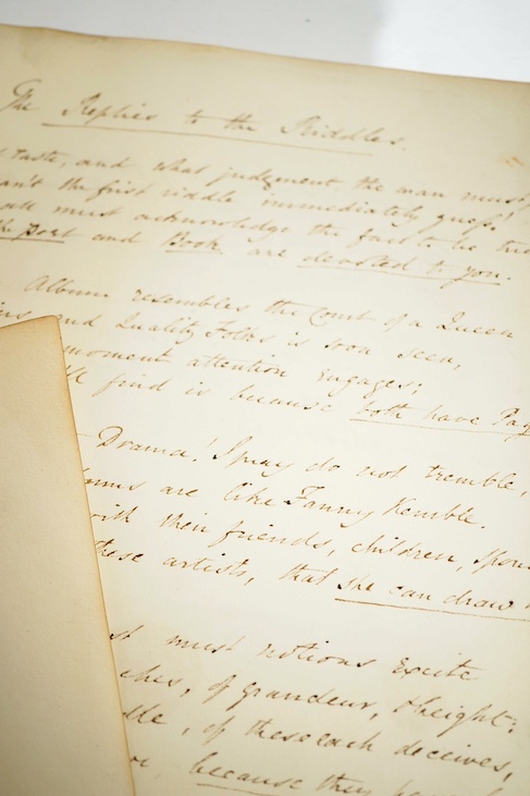 Cramer, Johann Baptist (1771-1858). Allegretto scherzando. Autograph music manuscript signed and dated 1832, one leaf, loosely laid down, together with one other music manuscript (4pp.) on embossed paper by Neukomm, (Sigismund). Song in Shakespeare's Twelth Night. Also five early 19th century pencil studies (disbound with frayed edges) and a handwritten and illustrated poem. (8).