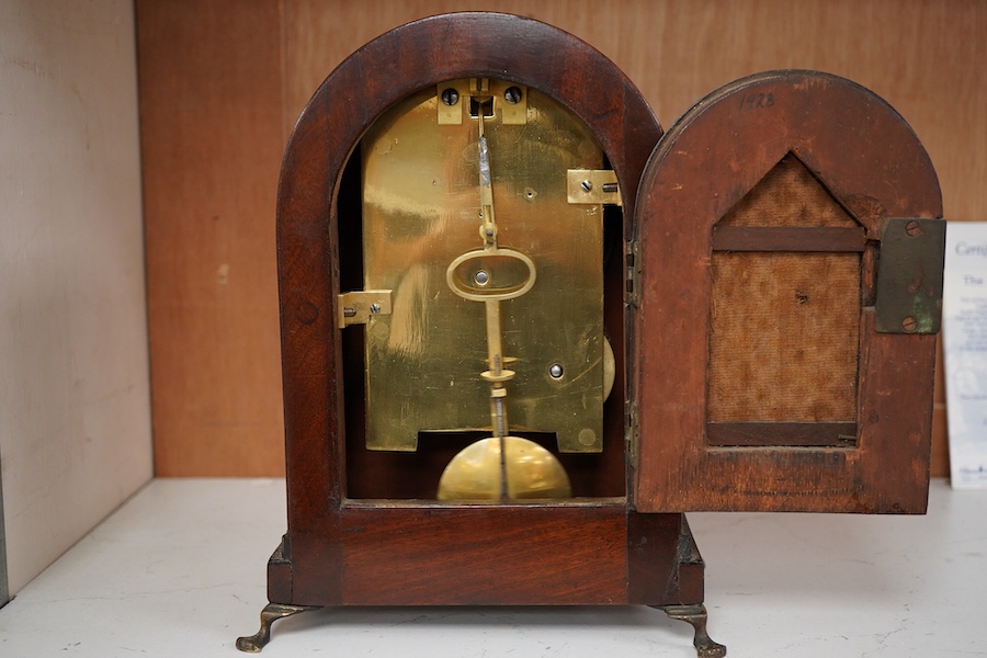 A small Regency brass inlaid mahogany bracket clock, 22cm