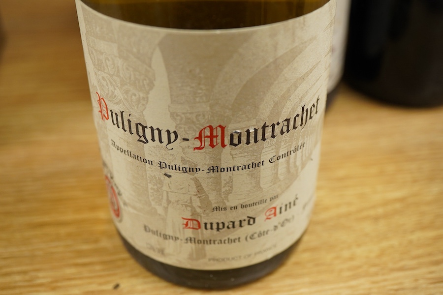 Eight bottles of wine; Chateau d’Agassac 1999, four bottles, Puligny-Montrachet 2002, two bottles, Côtes du Rhône 1978, two bottles