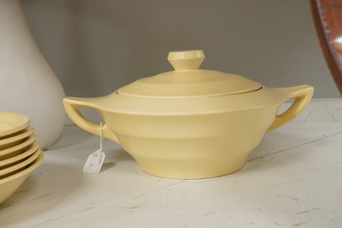 A part-set of Keith Murray Wedgwood dinnerware in matt straw, six-place setting including covered tureen (19)