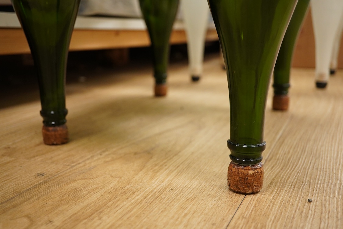 Lot 1406 , A Mary Canny ‘Champagne’ green art glass bottle table, 34cm high x 55cm wide x 38cm deep