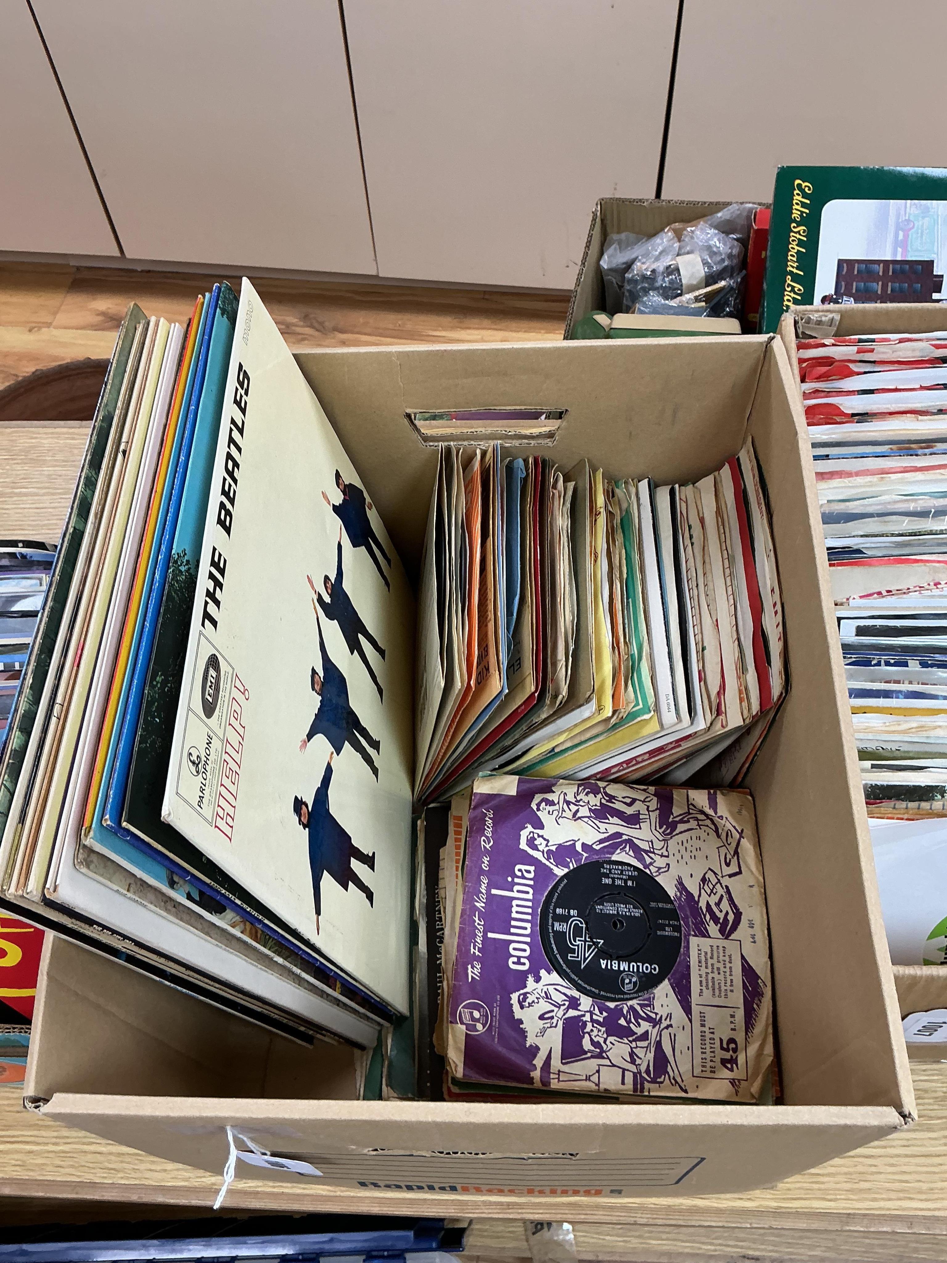 Lot 3006 , Fifteen LP record albums and a selection of 7 inch singles, albums include five by The Beatles; Help!, Abbey Road, The Beatles Ballards, Sgt. Pepper, and With The Beatles (missing cover), other artists include Fleetwood