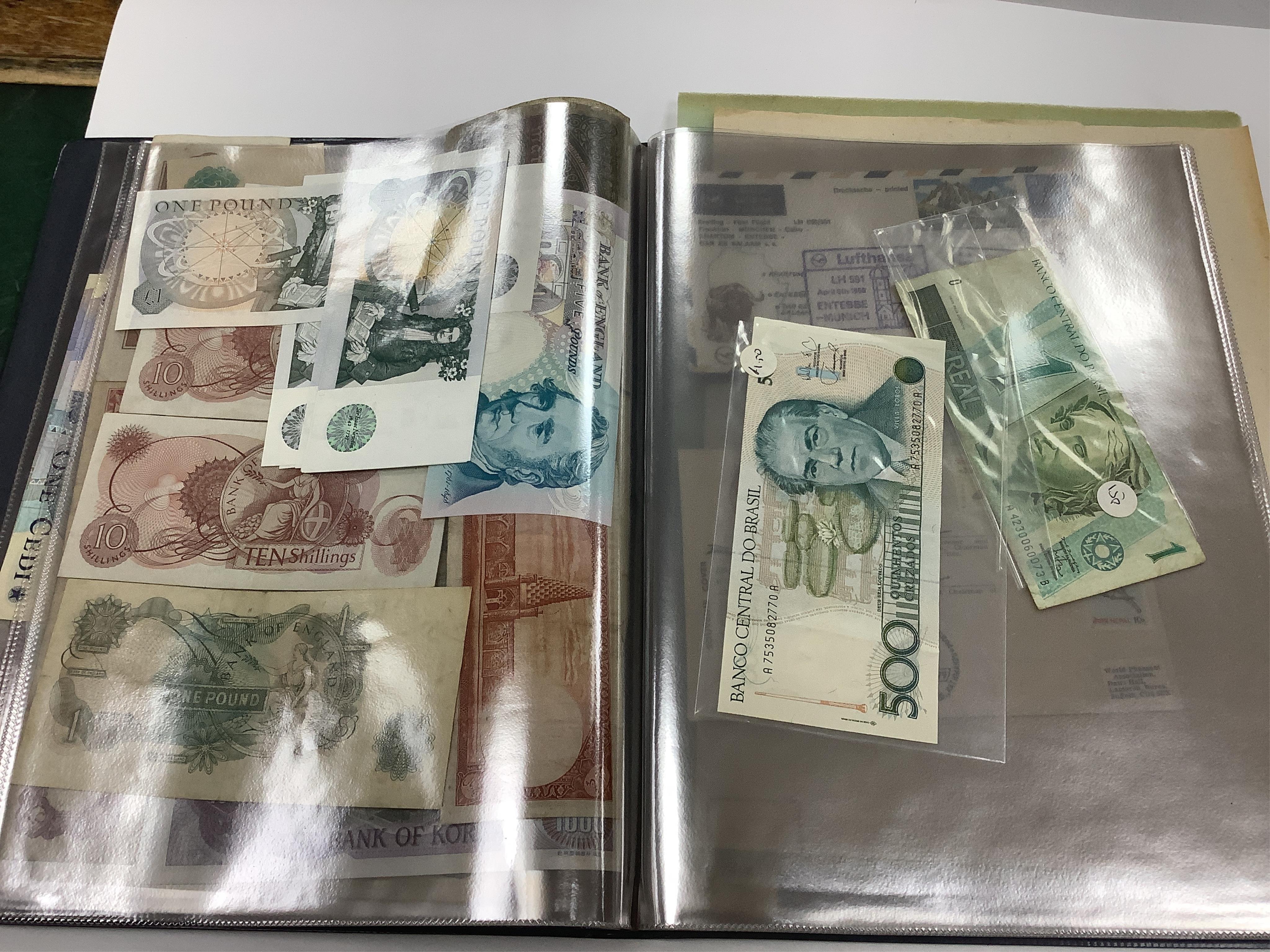 Ghana, Japan occupation, England and World banknotes, one album and loose leaves;