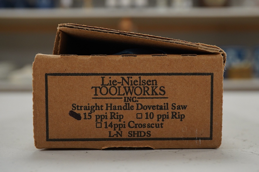 A boxed Lie-Nielsen Toolworks straight handle dovetail saw, 15ppi