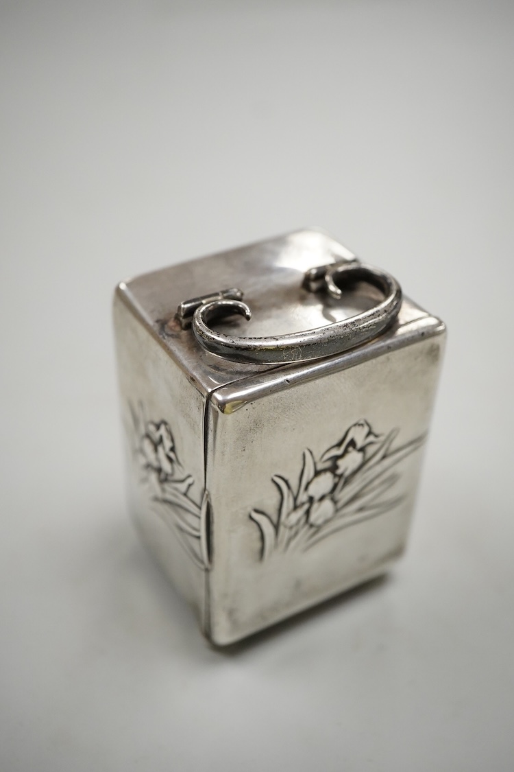 Lot 837 , An Edwardian miniature silver carriage timepiece by William Comyns, London, 1909, 65m with replacement quartz movement, together with a modern silver mounted desk timepiece.