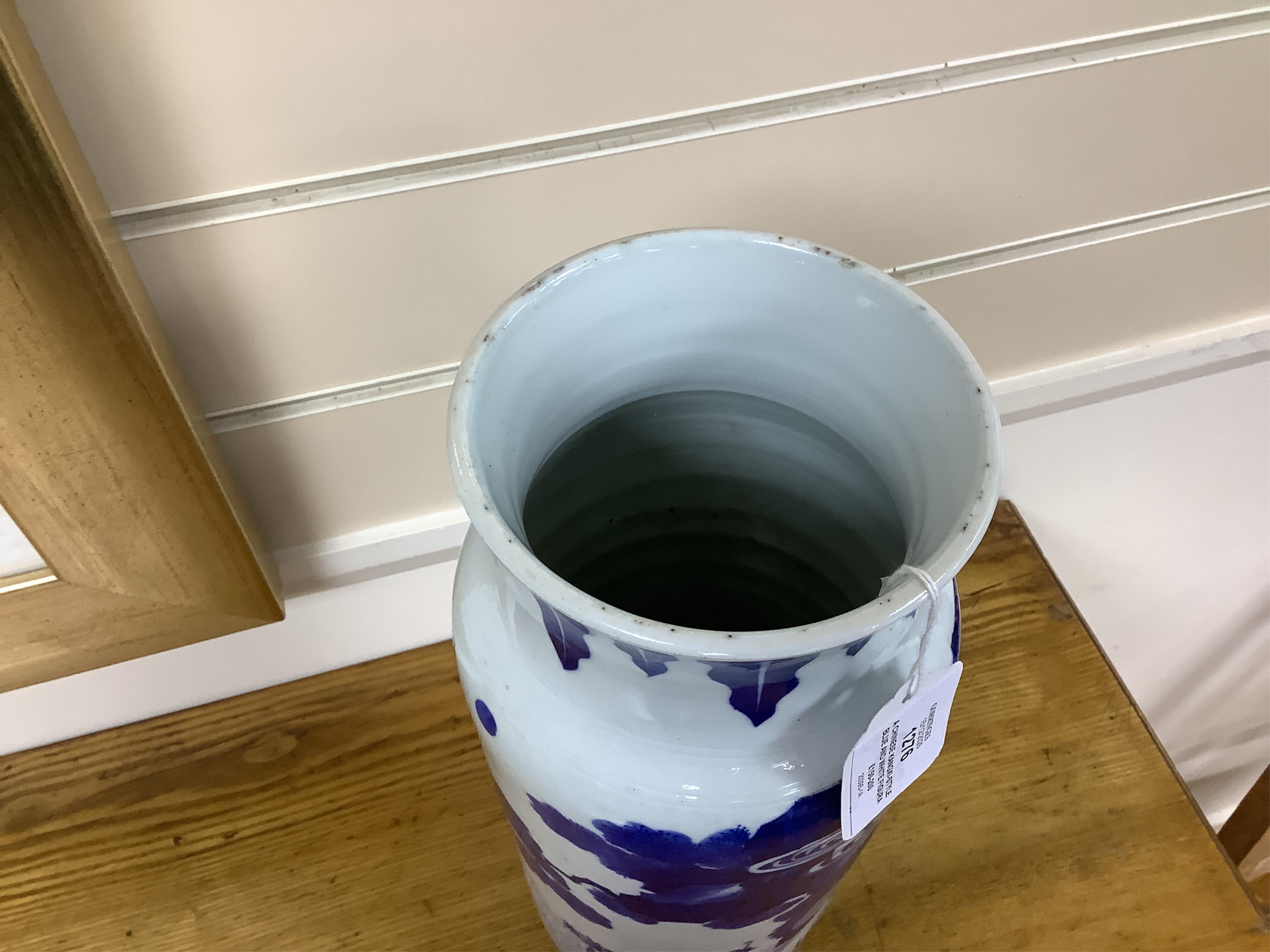 Lot 1276 , A Chinese Kangxi-style blue and white figural vase, 39cm