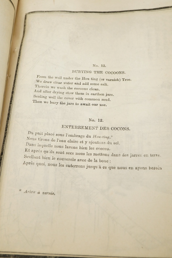 ° A Chinese text book, Imperial farming and silk production, and a smaller Japanese text book, 1874, brocade designs, largest 28x18cm