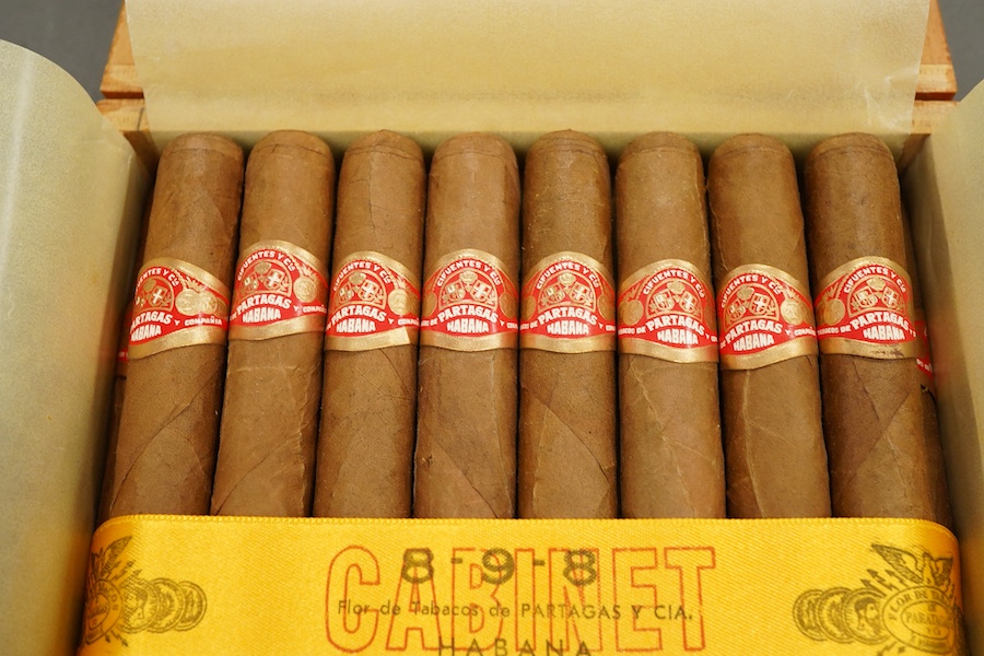 Cigars: Partagas Habanos Cuba, case of twenty-five.