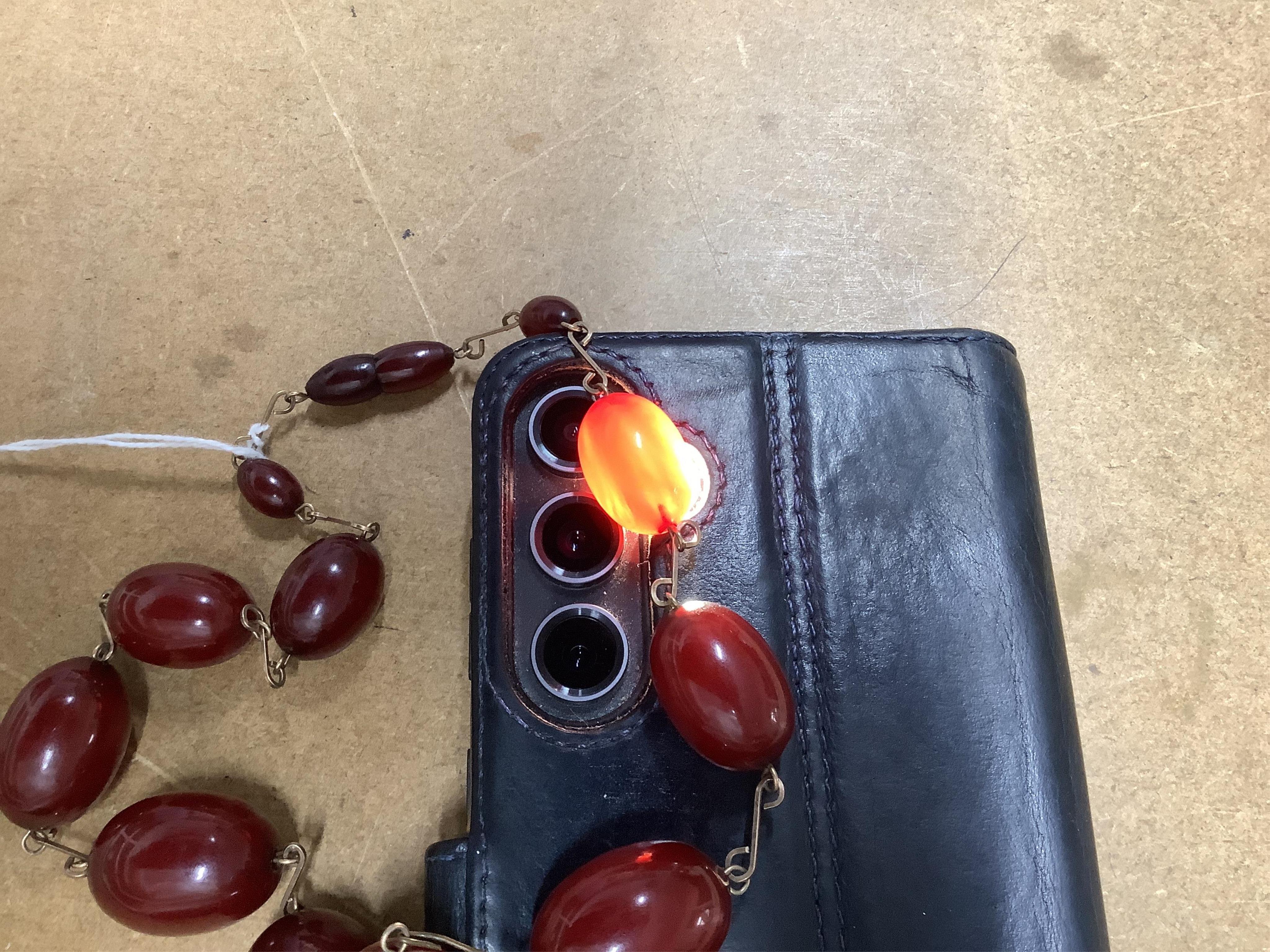 Lot 905 , A single strand graduated simulated cherry amber necklace, approx. 42cm, gross weight 51 grams.