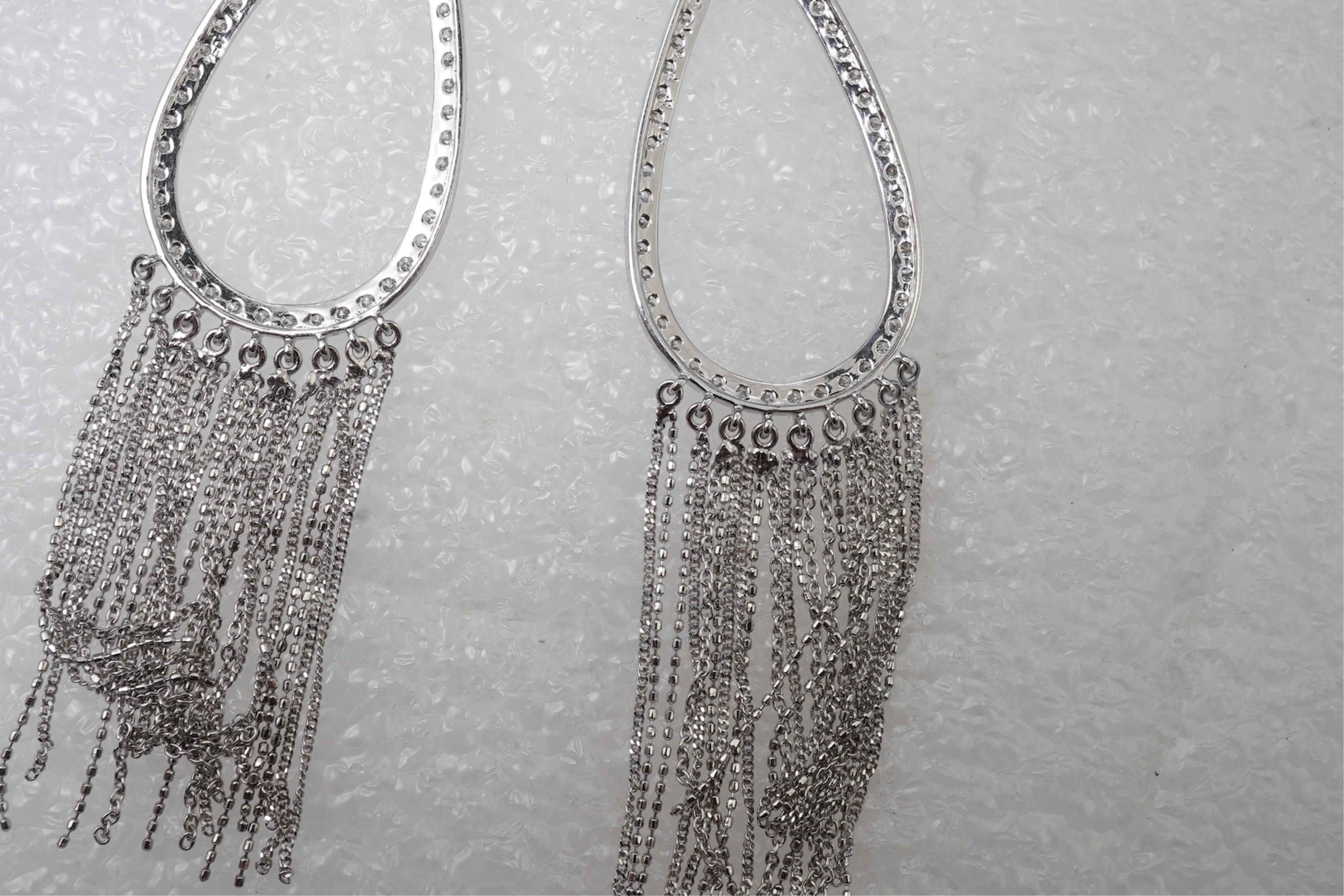 A pair of diamond earrings, of drop-shaped outline, set with brilliant-cut diamonds totalling approximately 2.50 carats, suspending a fringe of chain pendants, mounted in platinum, length approximately 9.5cm each, post fittings, stamped 950, combined gross weight approximately 13 grams
