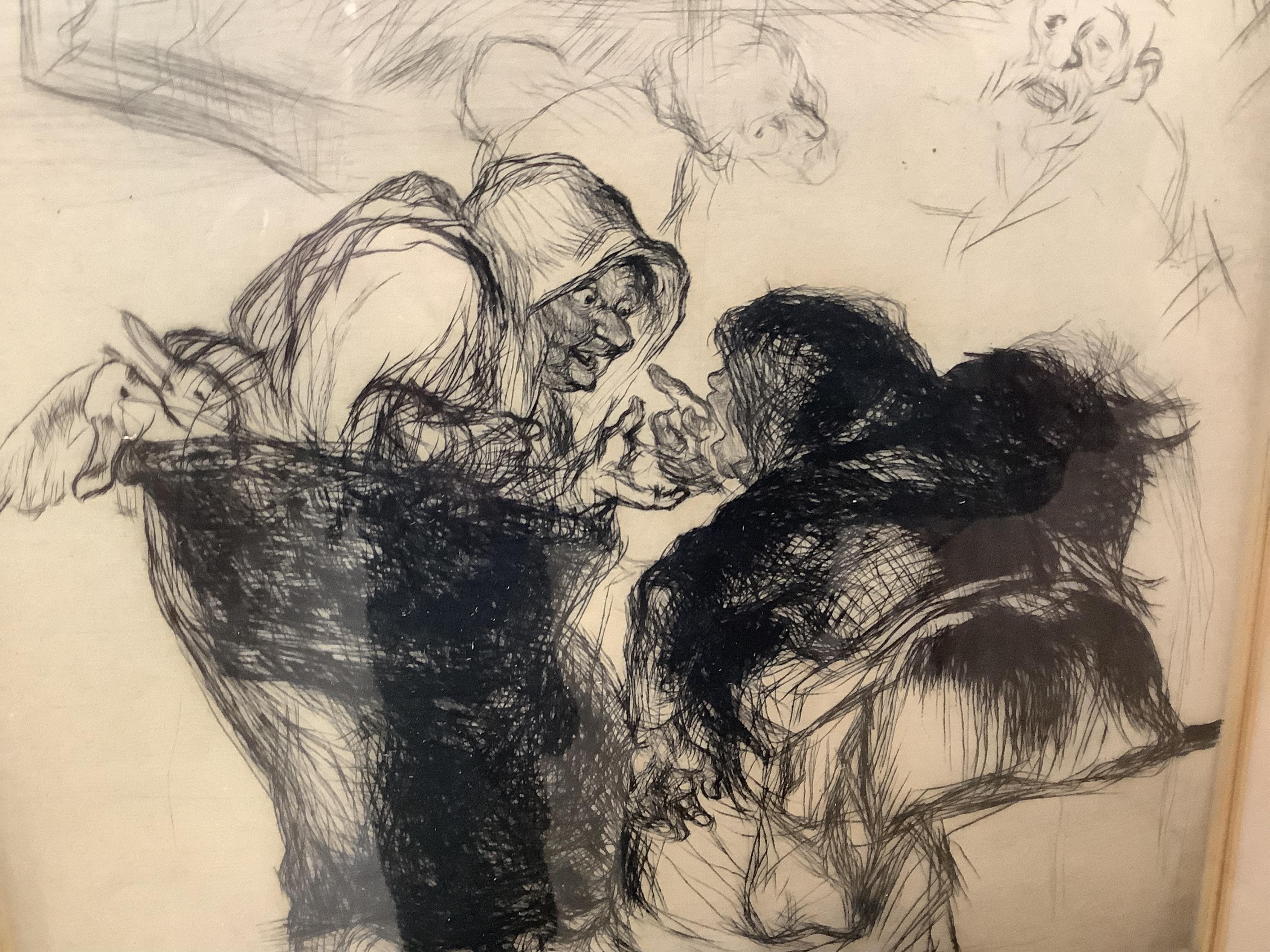 Lot 1748 , Edmund Blampied (1886-1966), ‘A Market Argument’, signed in pencil to the margin, limited edition 13/100, drypoint etching, 28 x 27cm