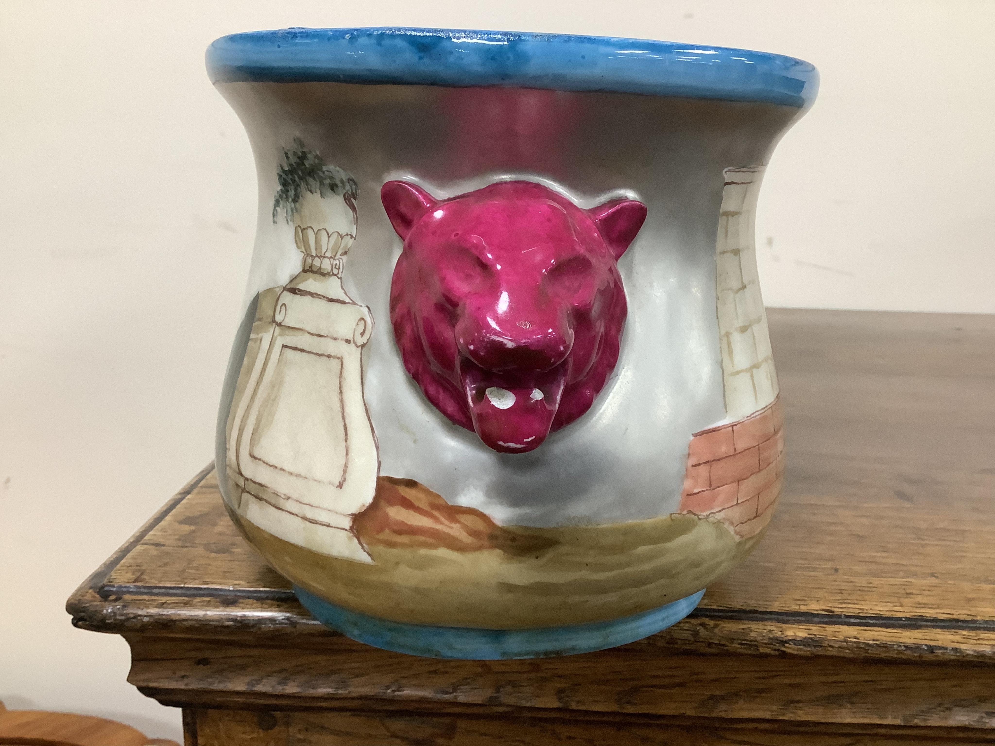 Lot 422 , A 19th century Paris porcelain planter, hand painted with a wine making scene and kitchen scene, with lead liner, 55cm wide