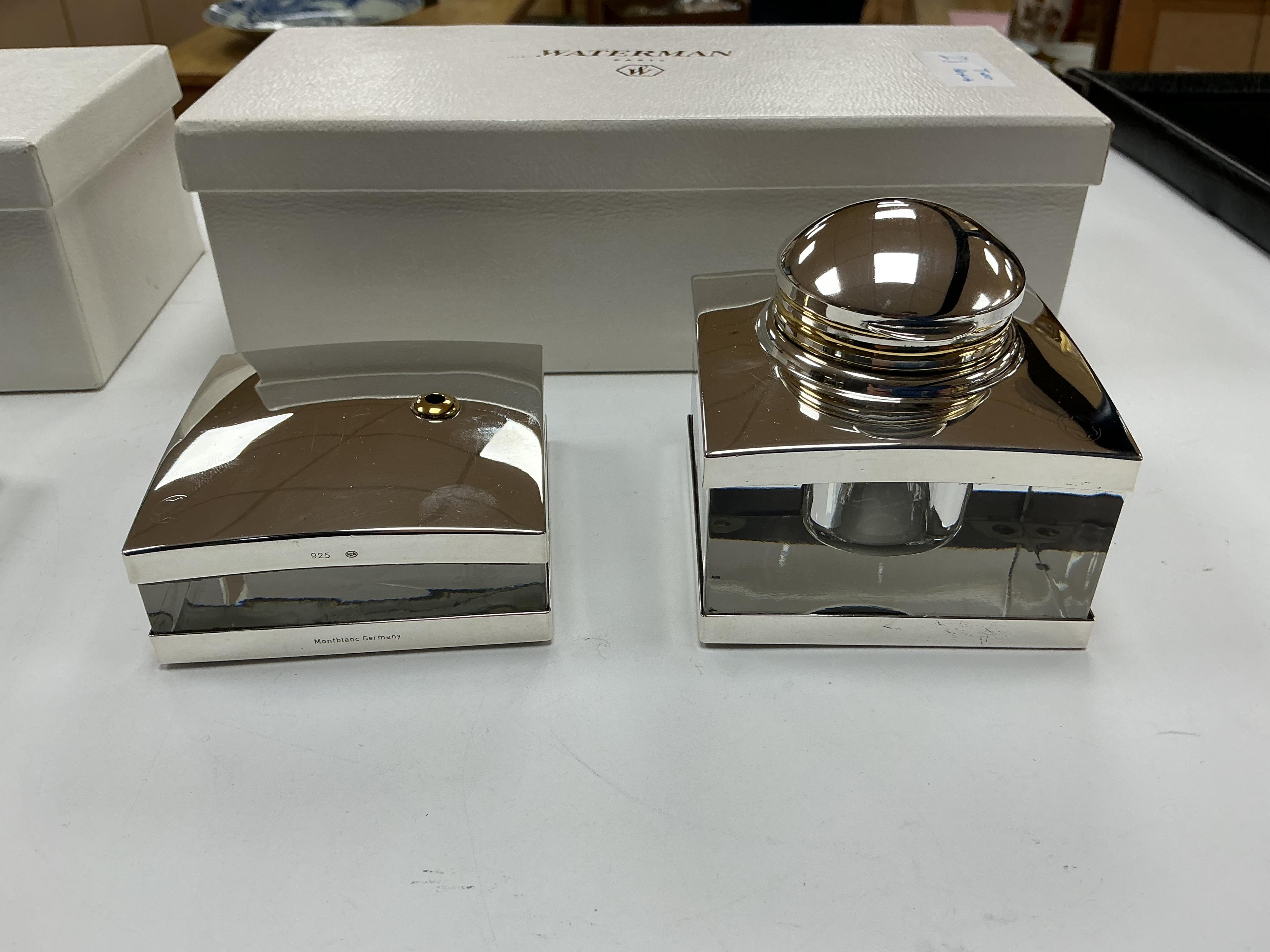 Lot 53 , A rare Montblanc Meisterstuck Sterling silver inkwell, blotter and pen holder in near perfect condition without any dings, dents or personal engravings - Solitaire Range