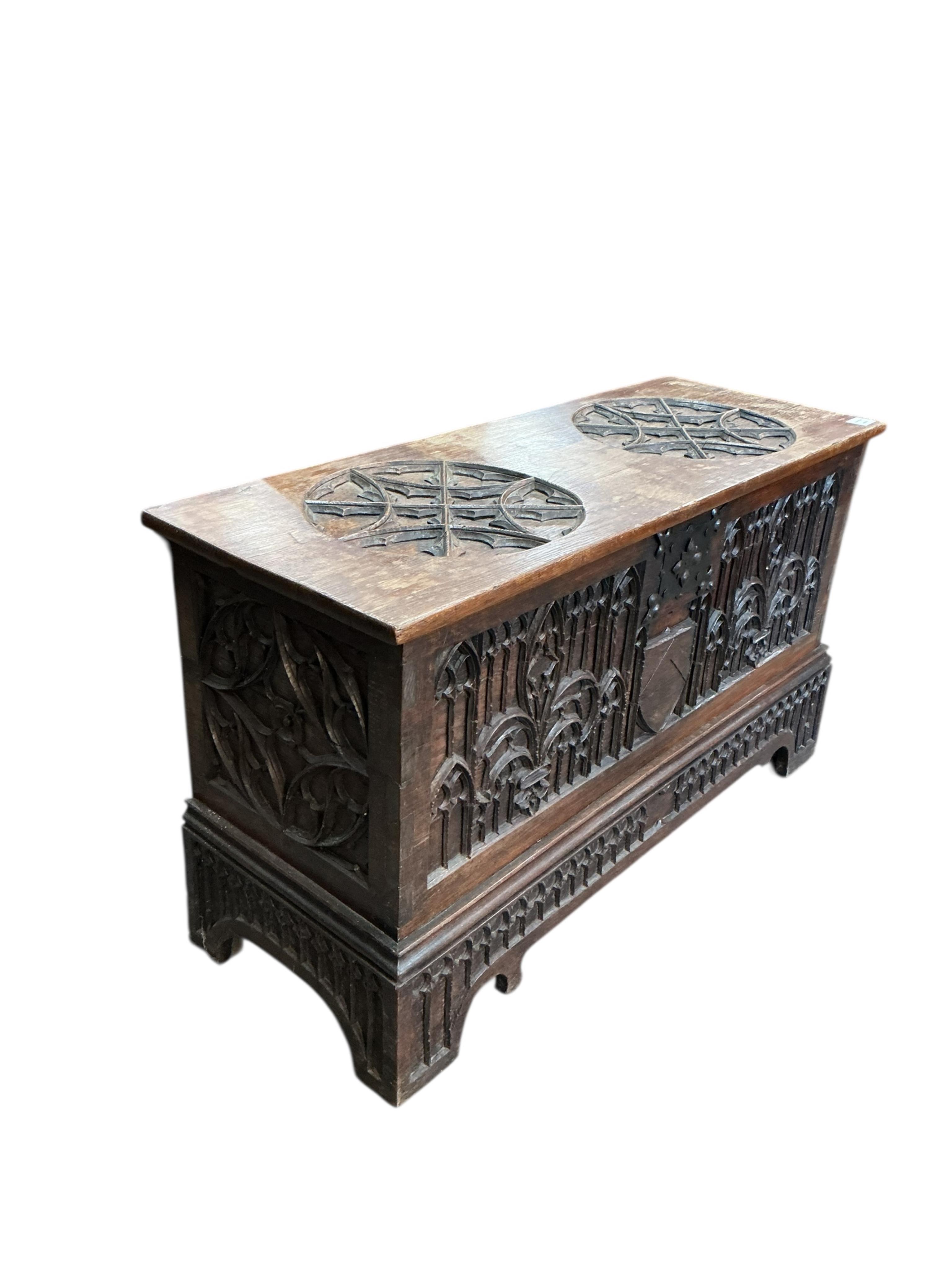 Lot 306 , An oak carved Gothic style coffer, width 107cm, depth 40cm, height 61cm
