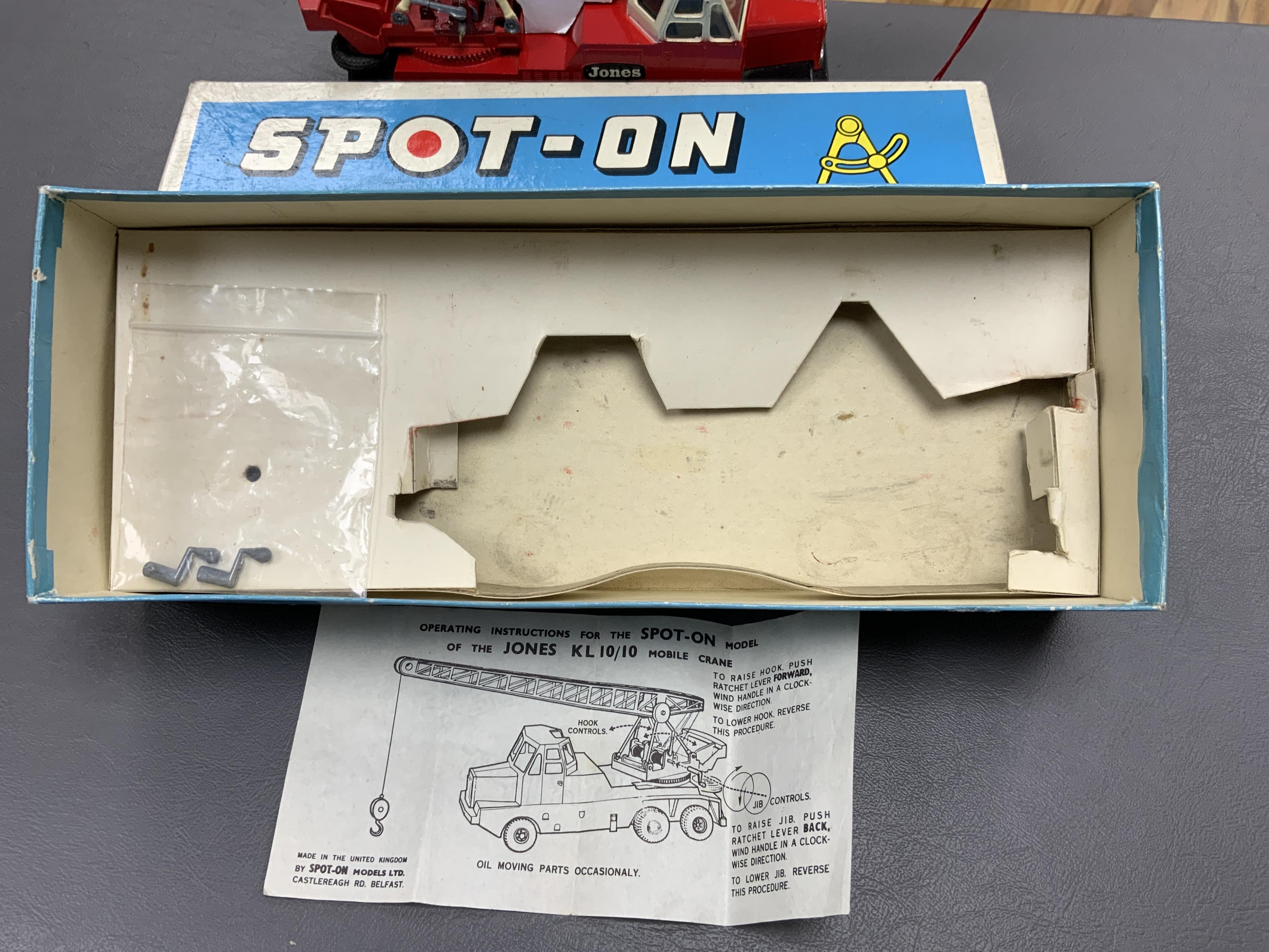 A boxed Tri-ang Spot-On Jones Crane (117), red body, with white cab and jib, with inner card packing piece, operating instructions and two winding handles