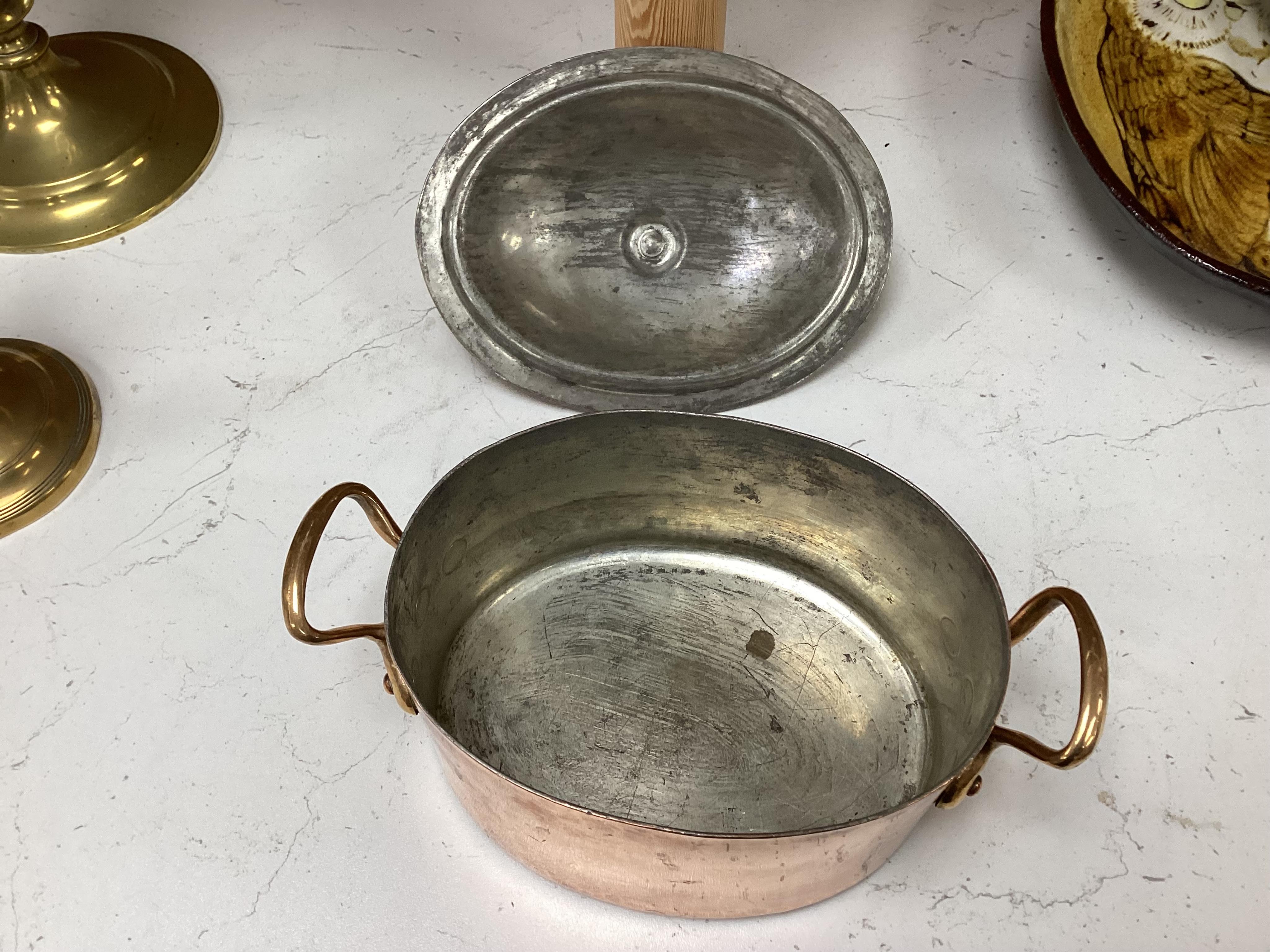 Lot 1266 , A collection of Helveita copper oval saucepans and roasting trays, 40cm wide, (7).