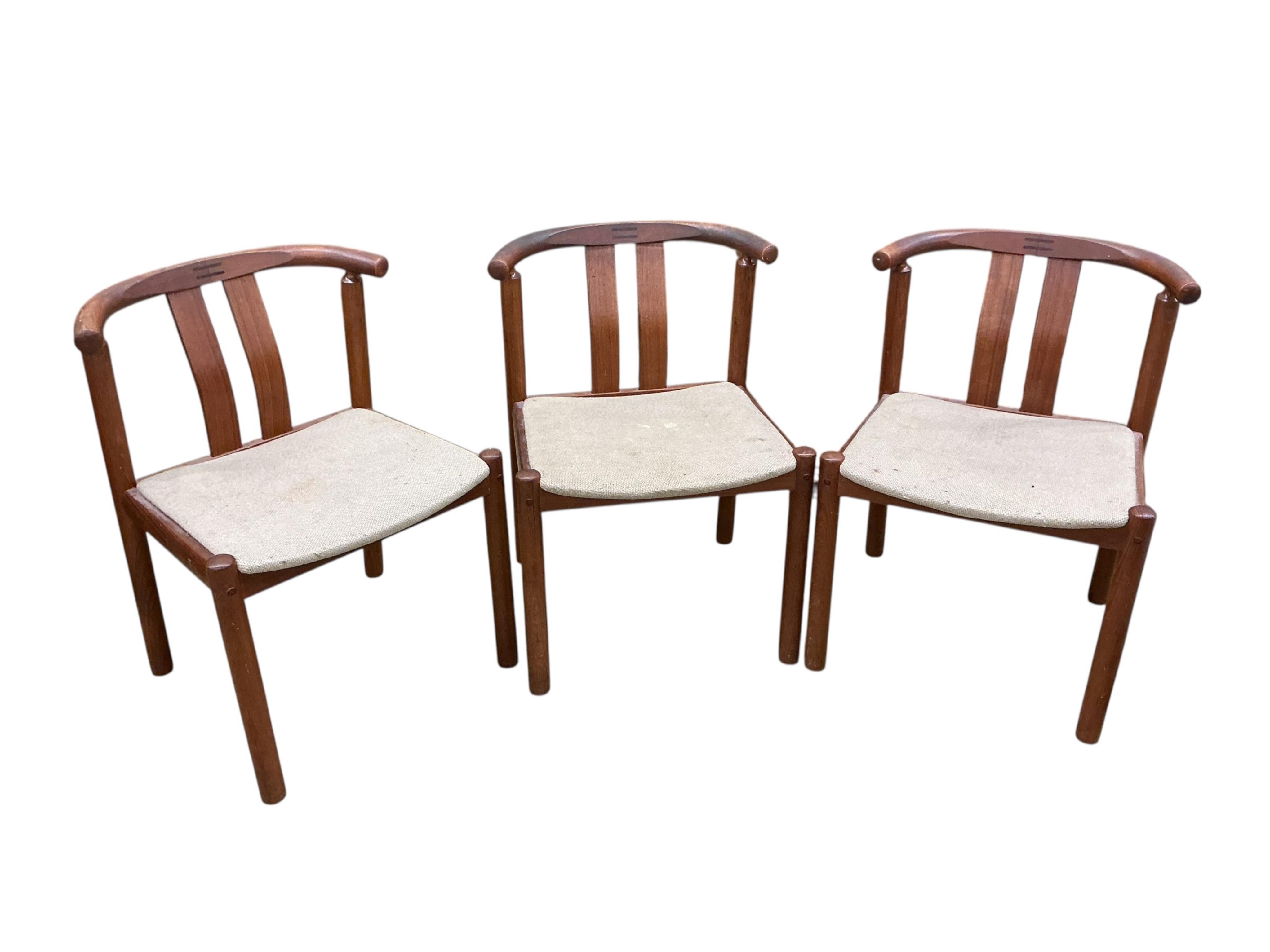 Peter Hvidt (Danish, 1916–1986) and Orla Mølgaard-Nielsen (Danish, 1907–1993) for France & Søn: A Model No. 20/59 teak drop leaf dining table 196cm extended, height 72cm and six teak Hans J. Frydendal for Boltinge Stolef