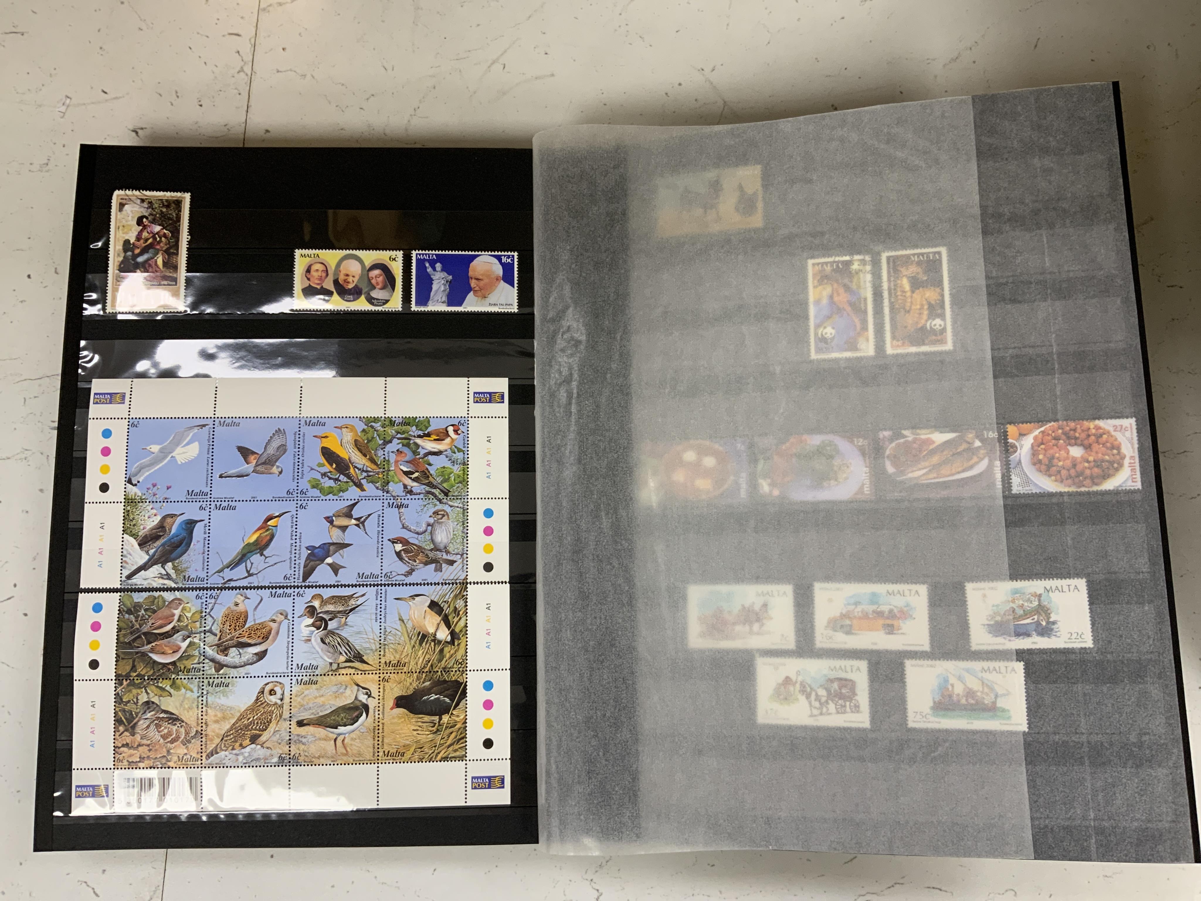 Lot 2172 , Twelve stamp stock books containing a variety of World postage stamps, countries including; Canada, Germany, Aden, Guernsey, St. Lucia, St. Kitts, Malta, Australia, northern Rhodesia, USA, each album dedicated to either