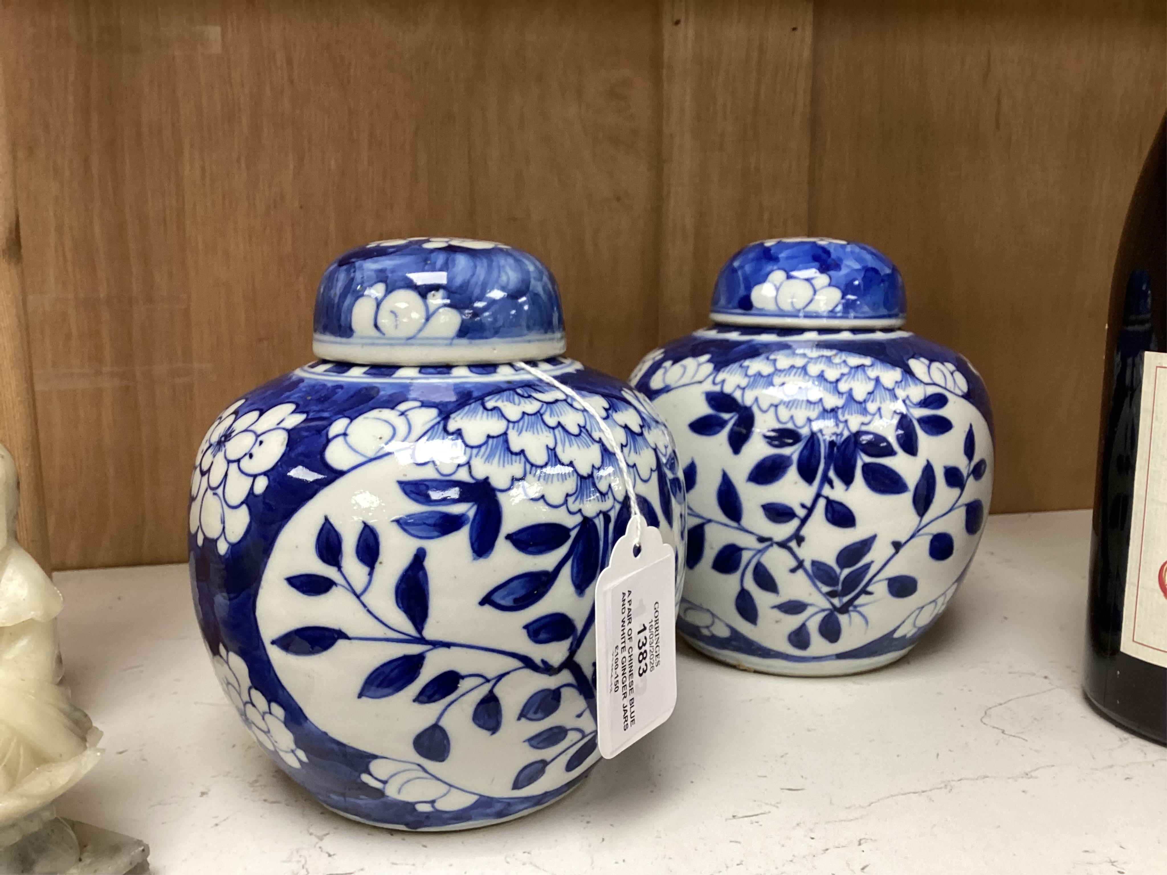 Lot 1383 , A pair of Chinese blue and white ginger jars and covers, height(s) 15cm.