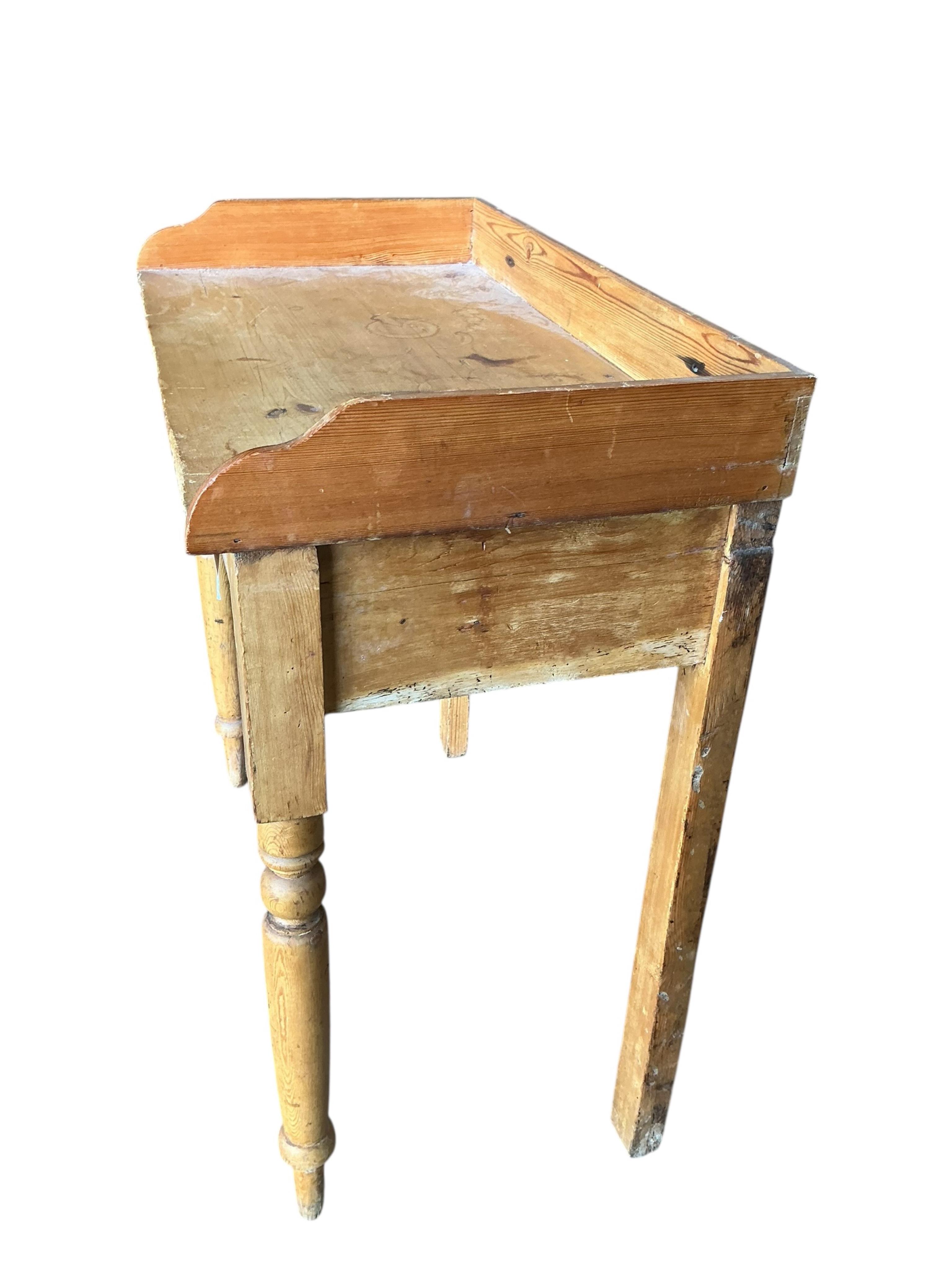 Lot 1123 , A pine shove ha'penny table, width 121cm, depth 60cm, height 61cm and a Victorian pine washstand, width 73cm, depth 41cm, height 80cm