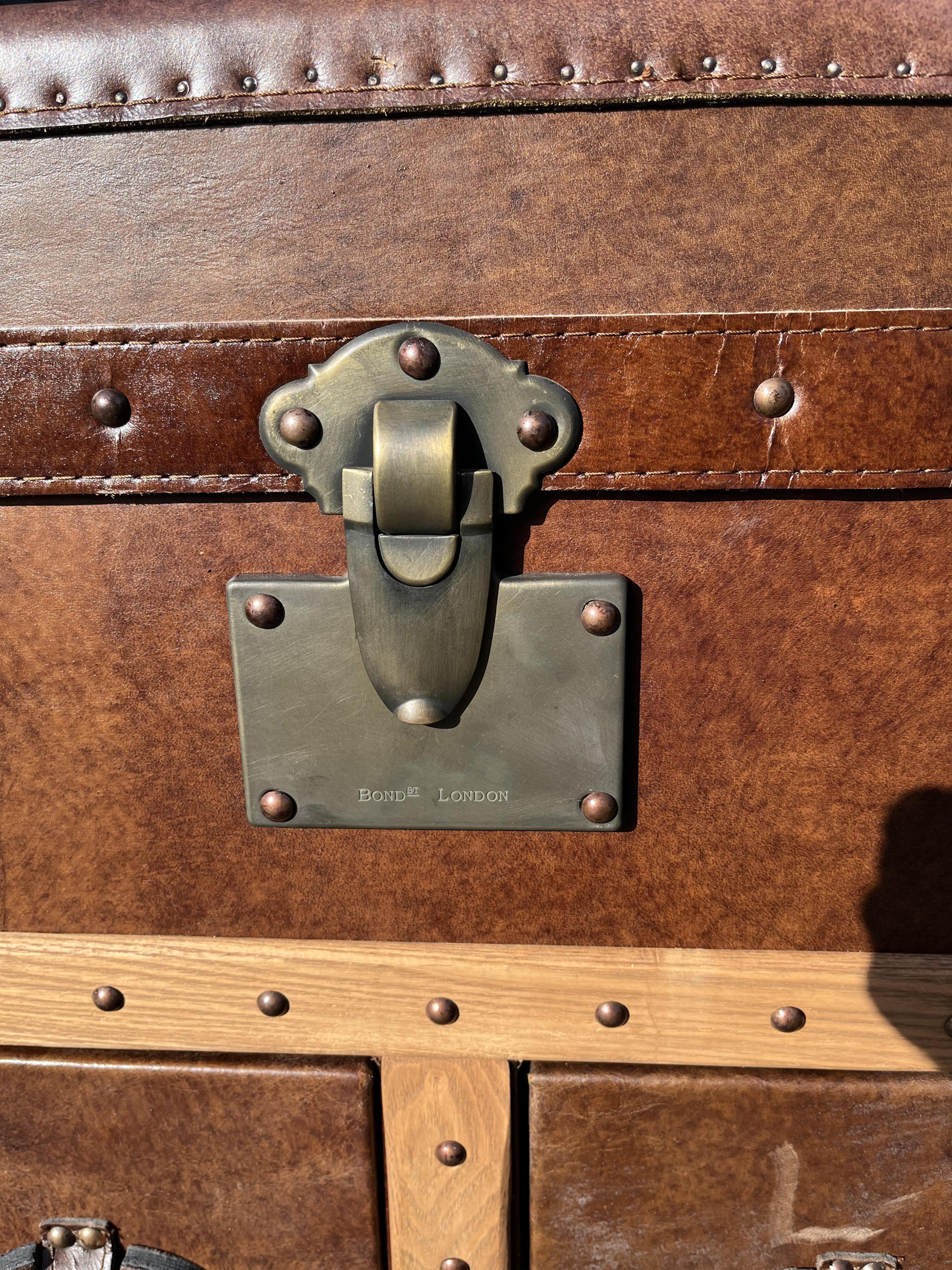 A Timothy Oulton Ampleforth sideboard in 'vintage cigar' finish, the upper compartment with hinged cover above an arrangement of six drawers, width 155.5cm, depth 52cm, height 101.5cm
