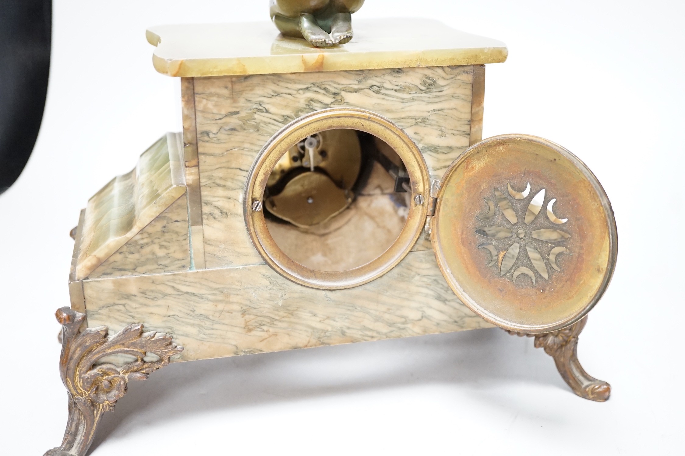 Lot 1273 , A French figural bronze mounted green onyx clock, 30cm