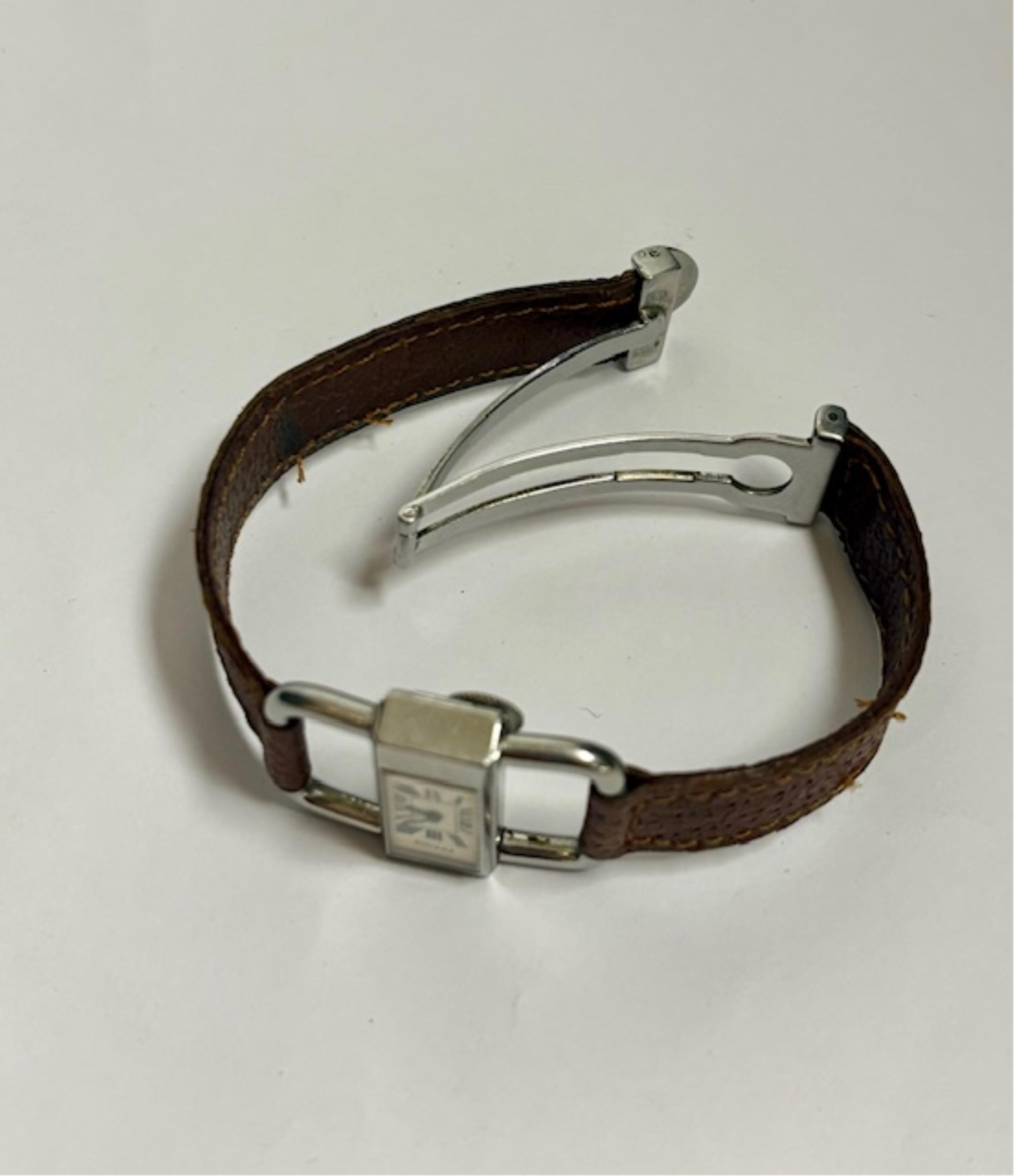 Watch ticks when wound and the hands adjust. Minor nicks and surface scratches to the case, commensurate with age and some use. Slight discolouration to the dial. Slight depression to the case on the side with the inset button? is. Unable to observe the movement. 'Made in France' quite tired on the case back. We are unable to open the watch to inspect the movement. In our option the dial is original and untouched being similar to other examples of around the same date.