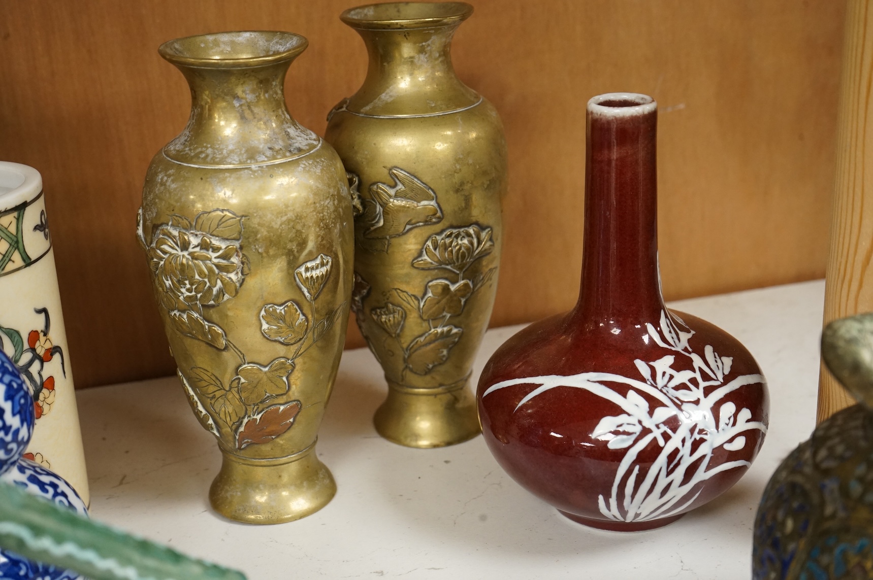 Chinese and Japanese items to include an early 20th century Chinese eggshell porcelain bowl and an enamelled bronze vase, largest 19cm high