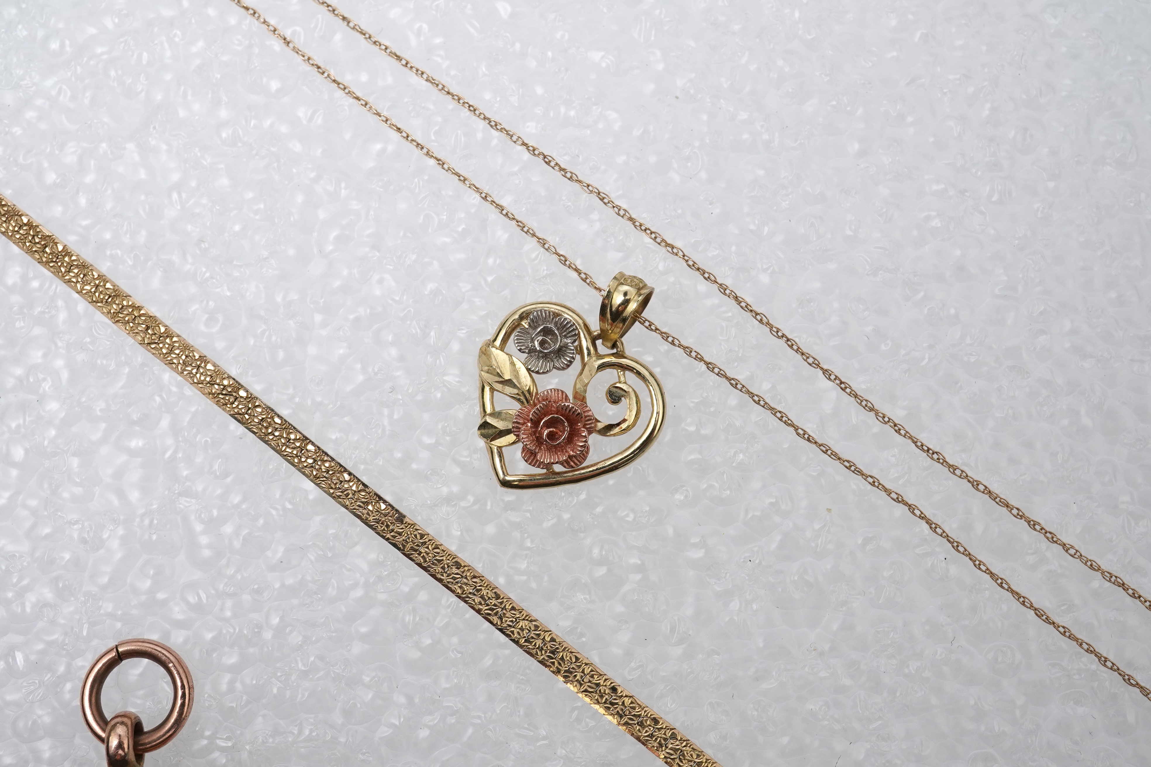 Lot 903 , A modern 18ct gold and multi gem set cluster ring, size P, together with two 9ct rings including moss agate and a pair of 9ct gold and seed pearl set cabochon garnet ear studs.