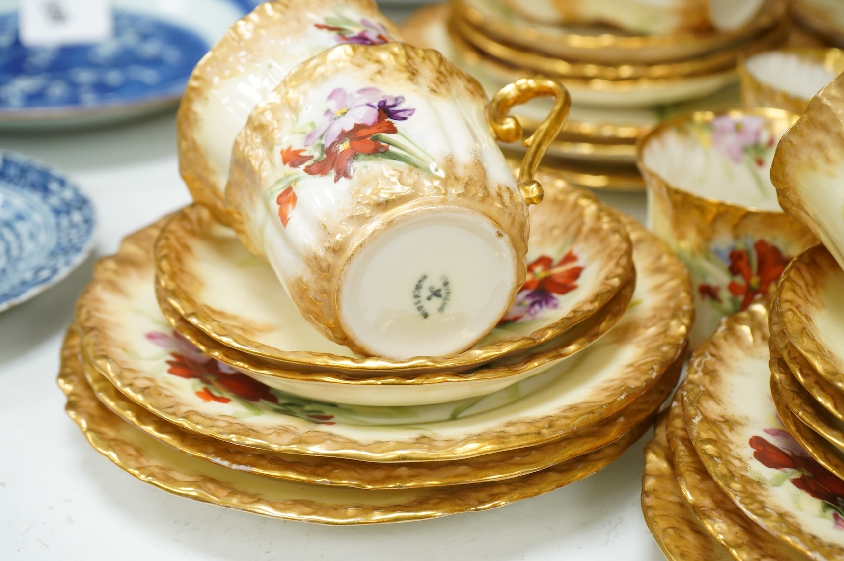 A ‘Nautilus’ porcelain floral and gilt decorated tea service, sandwich plates 23cm diameter.