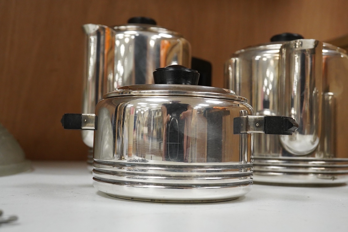 An Art Deco Christofle Gallia four piece silver plated tea set, largest 20cm wide
