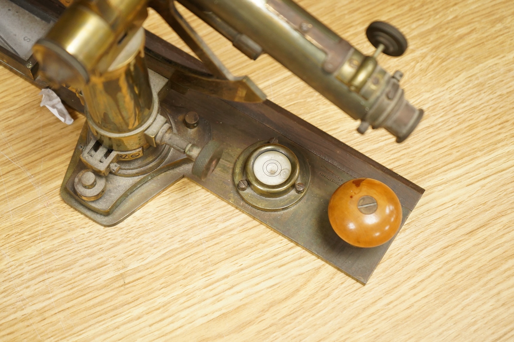 Lot 279 , A German brass alidade by F. Sartorius, Göttingen, number 1755, 58.5cm wide, contained within a fitted birch case with applied maker’s label and other reference markings, the case; 63cm wide, 14cm high, 25cm deep at the