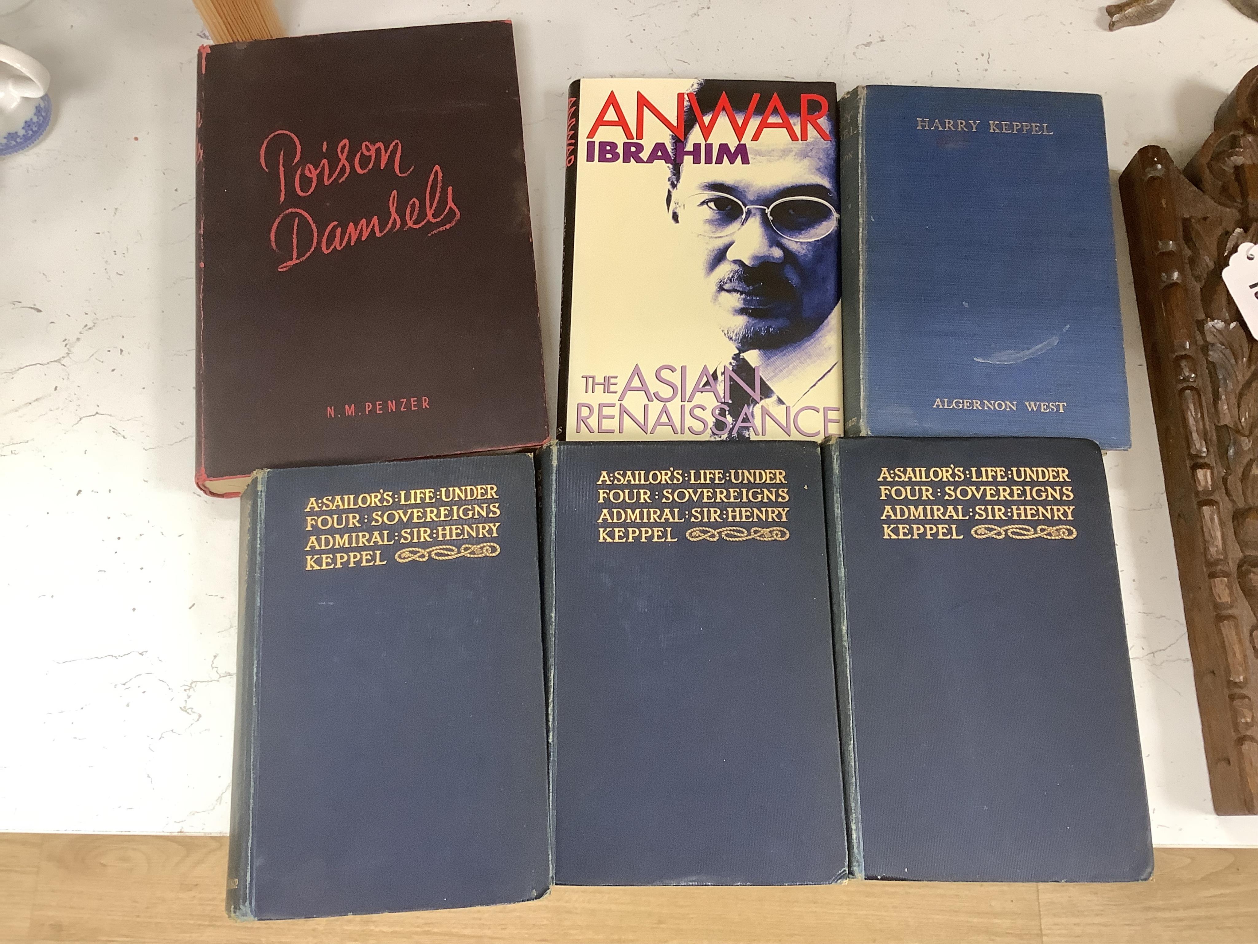 Includes Keppel Sailor’s Life Under Four Sovereigns complete in three volumes. Fauconnier - good; Swettenham - good; Others include Homan's Noone of the Ulu (1958); Davidson - Houston's Yellow Creek (Shanghai, 1962); Hatton's New Ceylon (1881); Wavell's Lost World of the East ( Malayan Hinterland, 1958). No guide books, leaflets, separate maps, directories.